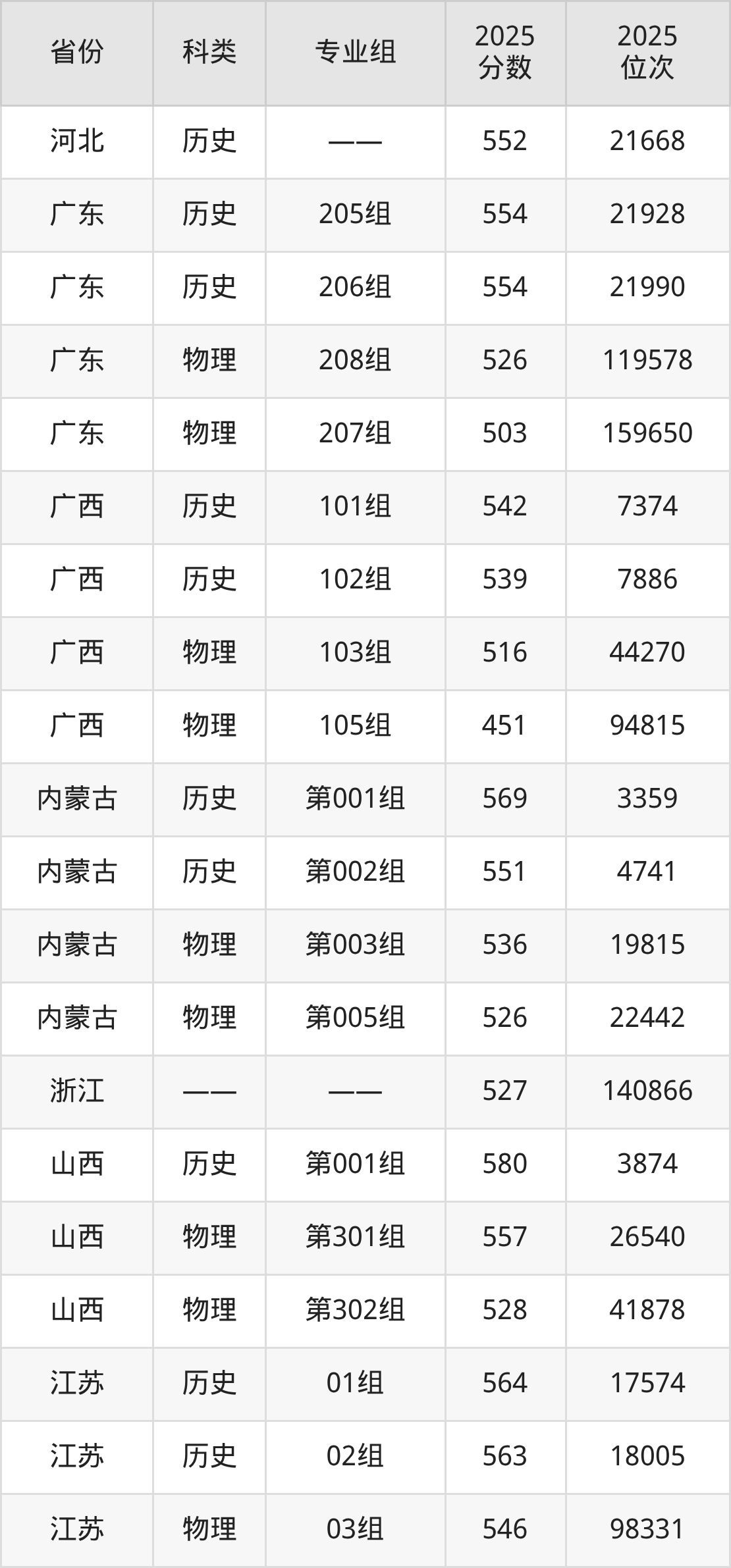 4、广西:最低分451分,对应最低分专业组为物理类105组,位次94815名;