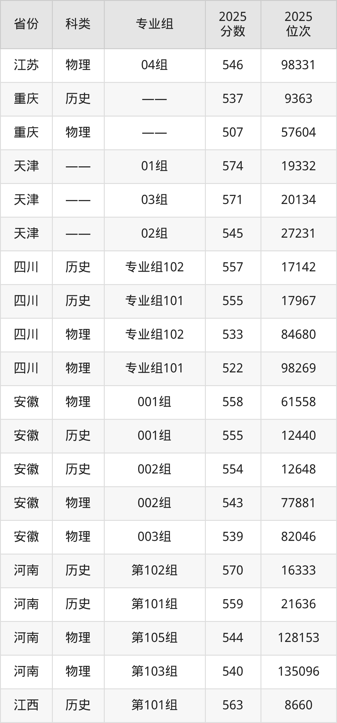 3、上海:最低分429分,对应最低分专业组为02组,位次43379名;
