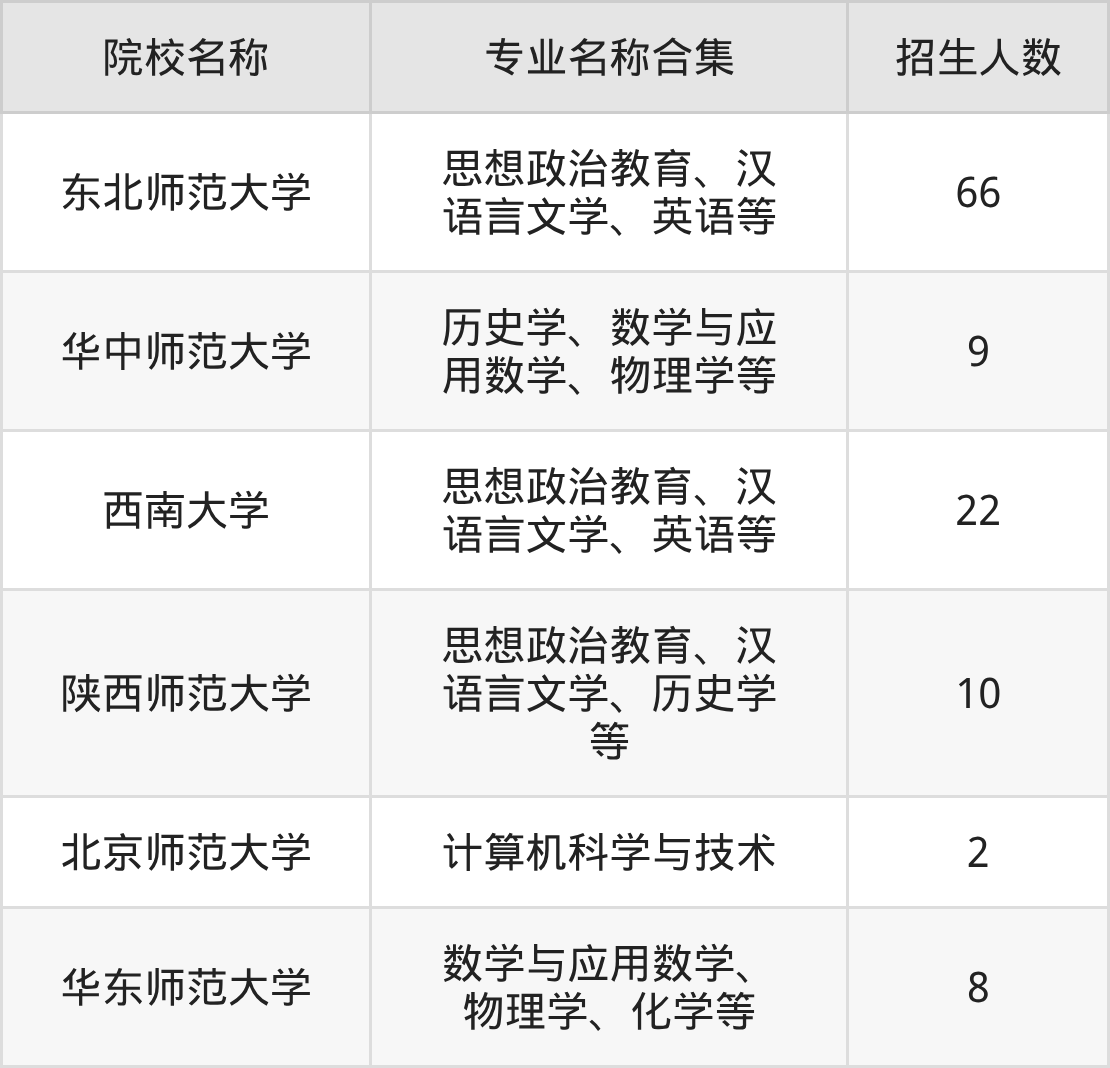 其中,东北师范大学以66人招生规模居首,西南大学22人紧随其后,陕西师范大学招10人,构成招生第一梯队。