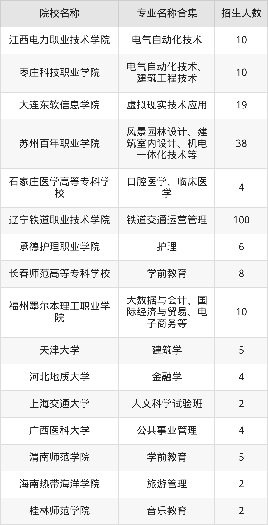 河北:河北工程大学、华北理工大学、河北农业大学、衡水学院、燕山大学、北华航天工业学院、保定理工学院、石家庄医学高等专科学校、承德护理职业学院、河北地质大学