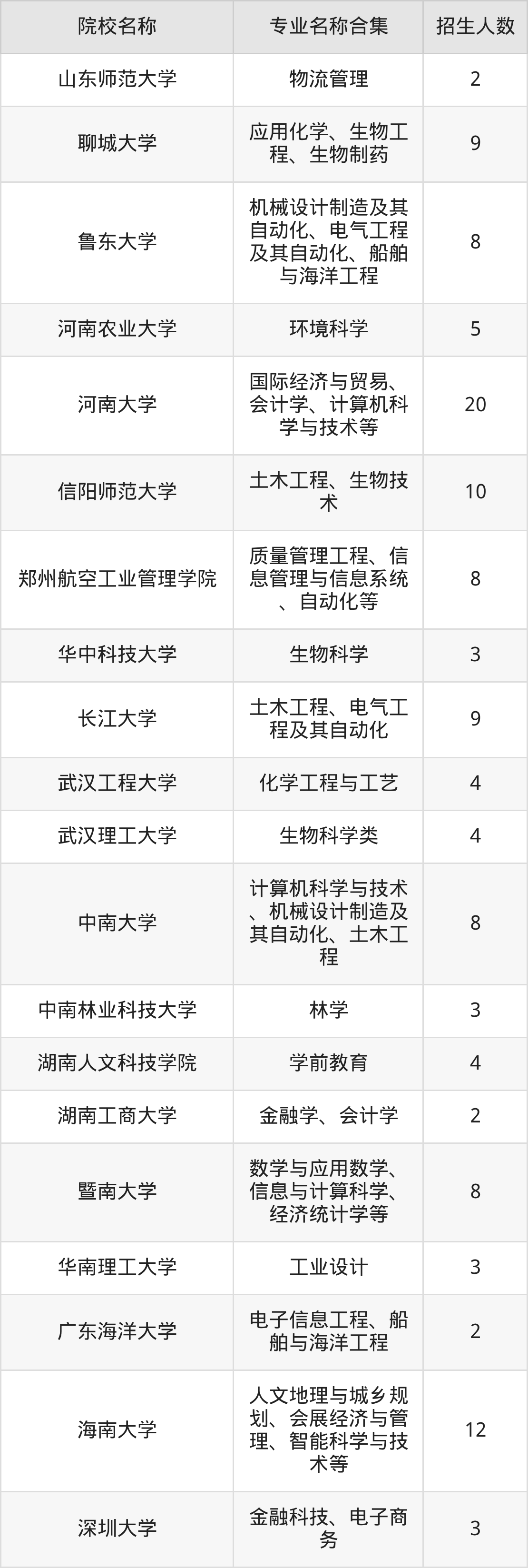 河南:华北水利水电大学、河南农业大学、河南大学、信阳师范大学、郑州航空工业管理学院、黄淮学院、南阳理工学院