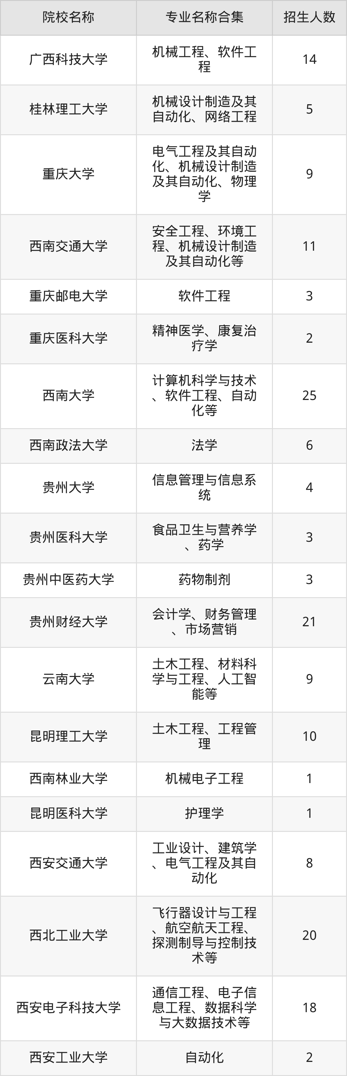 云南:云南大学、昆明理工大学、西南林业大学、昆明医科大学