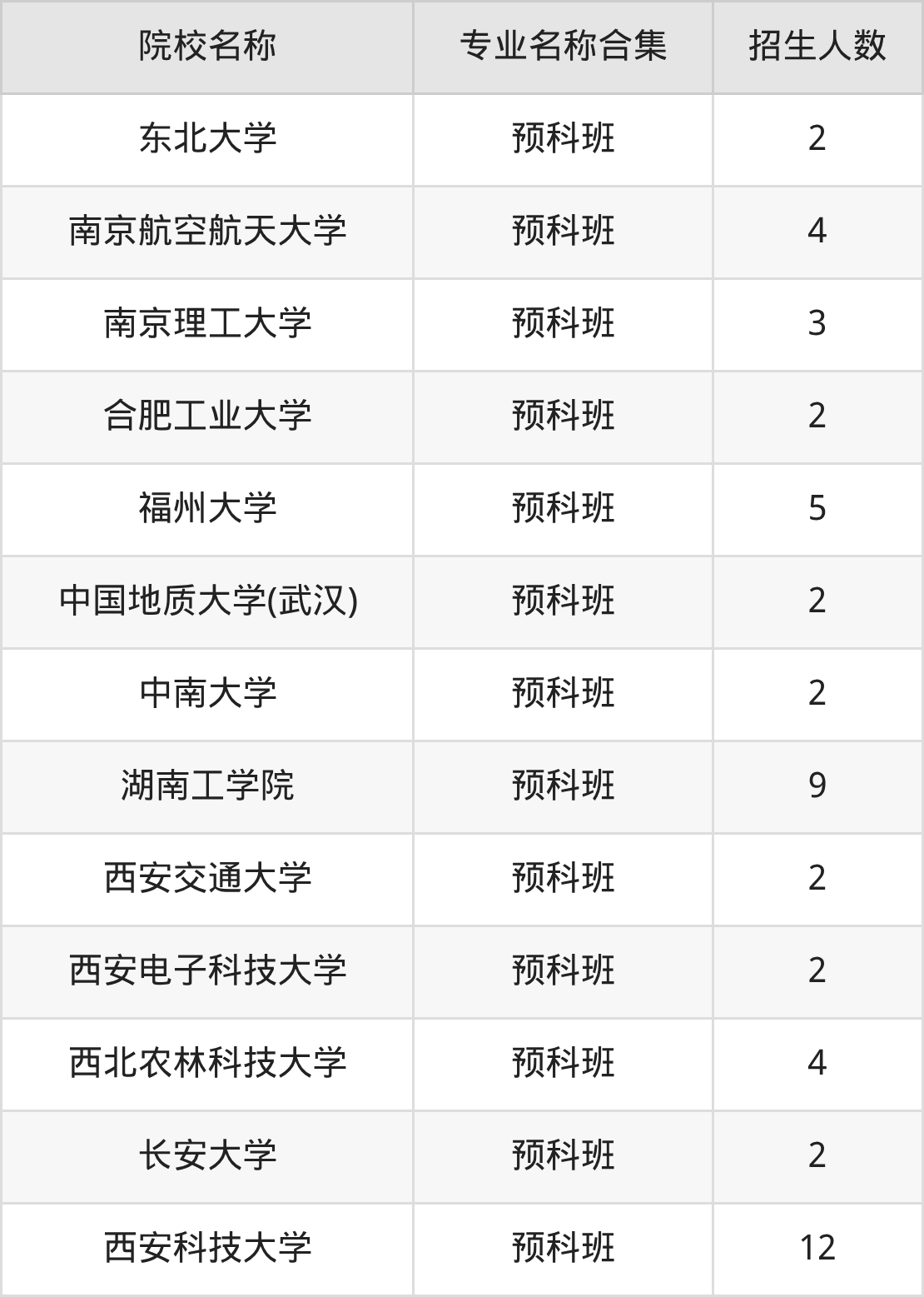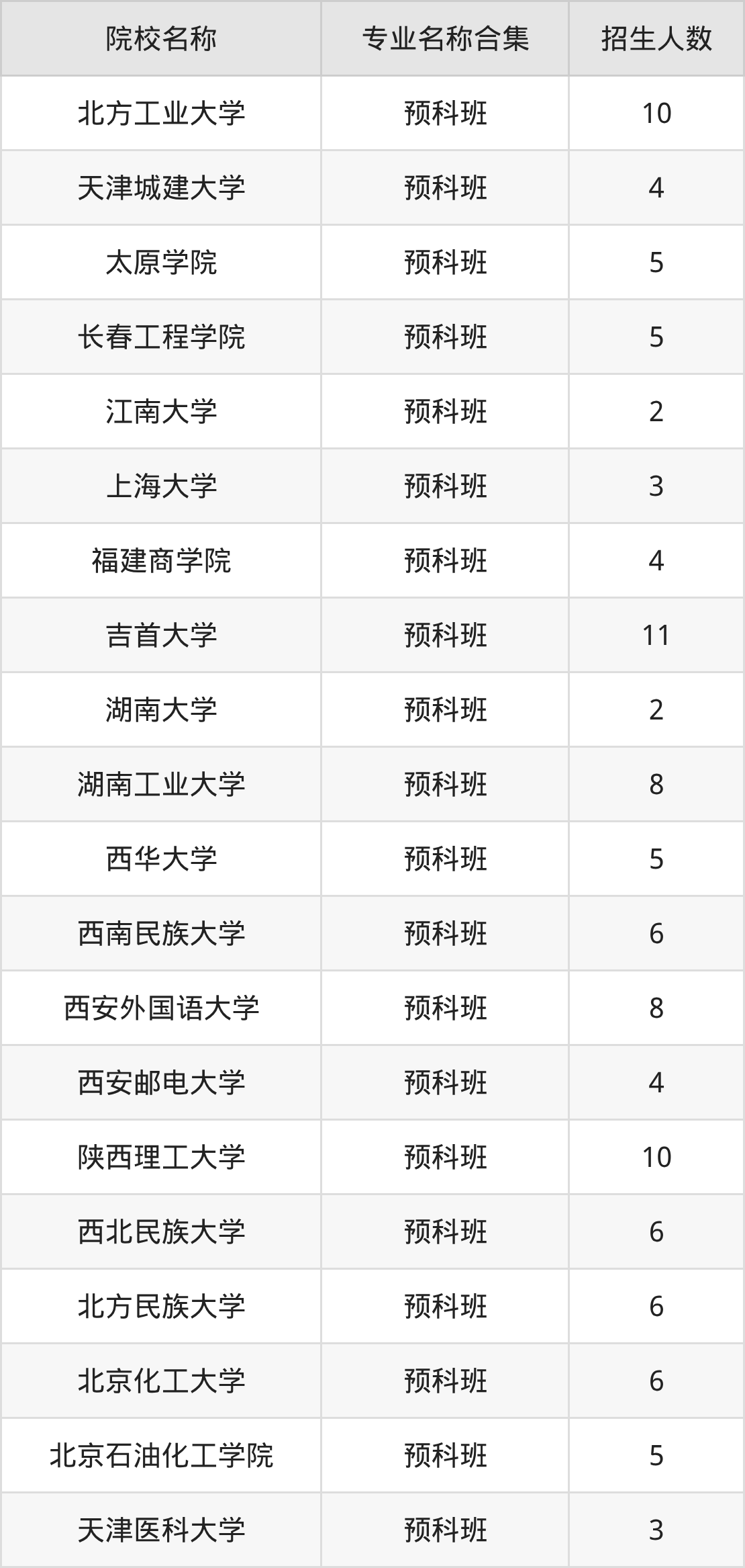陕西高考少数民族预科班院校完整名单一览表如下。