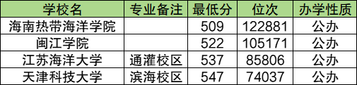 二本海洋技术分数线排名前三的还有:537分的江苏海洋大学、522分的闽江学院。