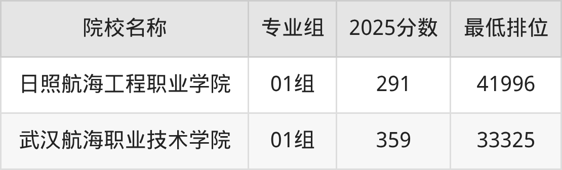 第二梯队(300分及以下):日照航海工程职业学院(01组是291分)