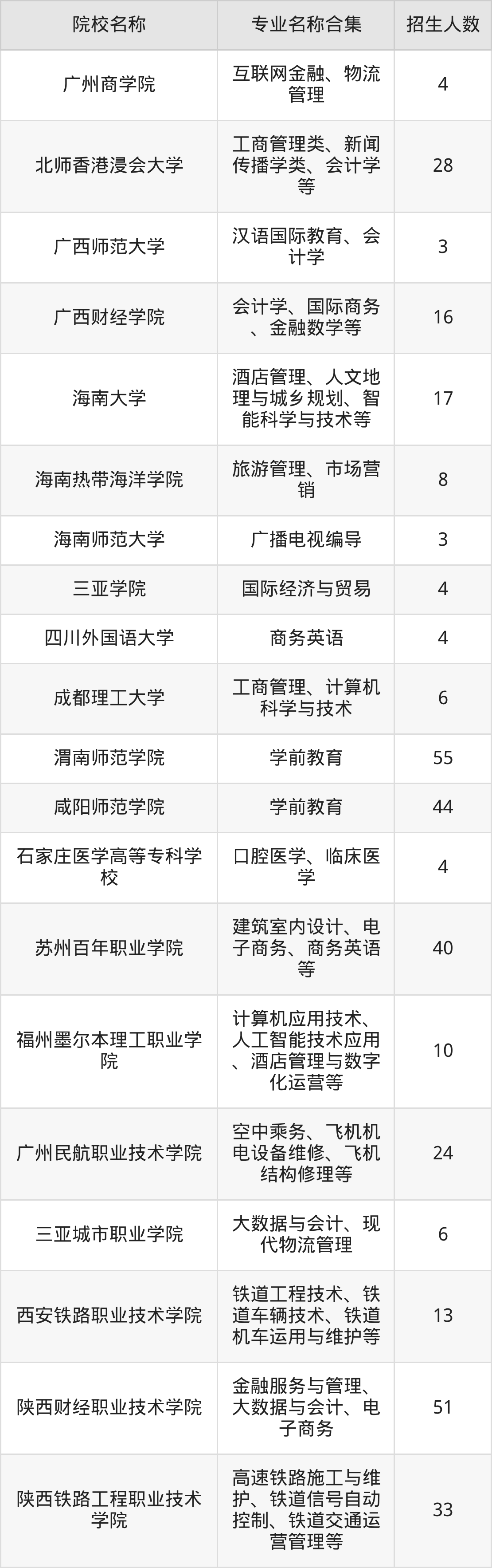 海南:海南大学、海南热带海洋学院、海南师范大学、三亚学院、三亚城市职业学院、海南医科大学