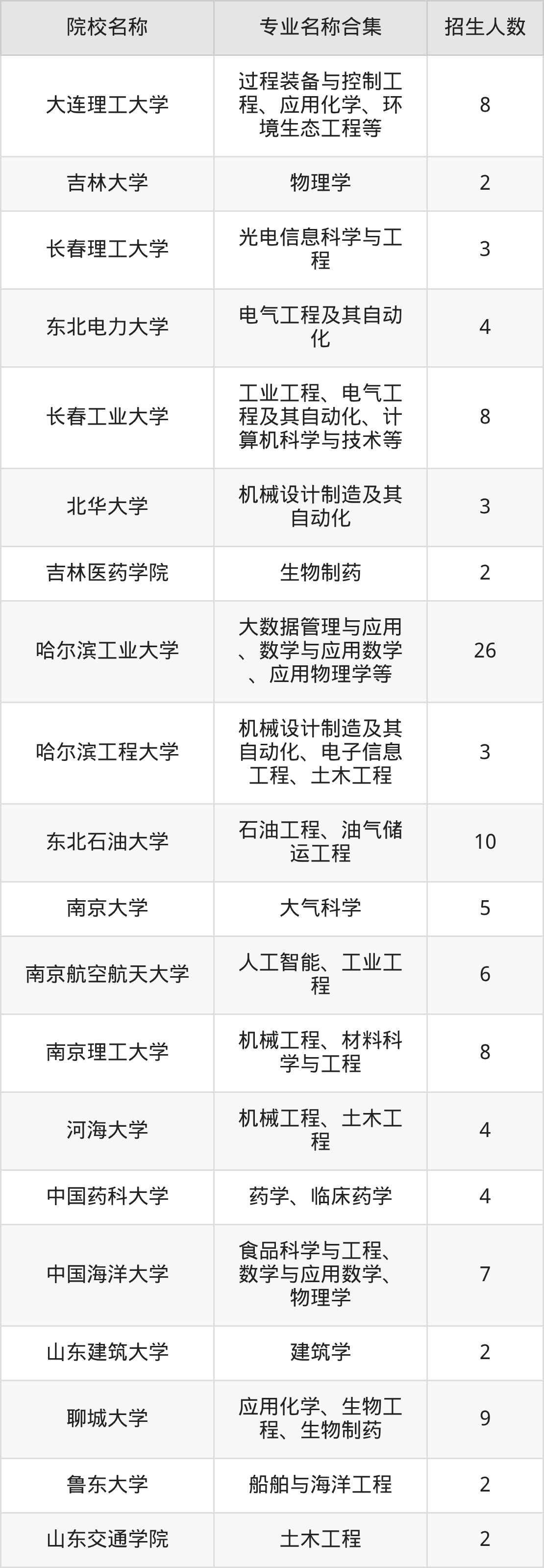 吉林:东北师范大学、吉林财经大学、长春大学、吉林大学、长春理工大学、东北电力大学、长春工业大学、北华大学、吉林医药学院