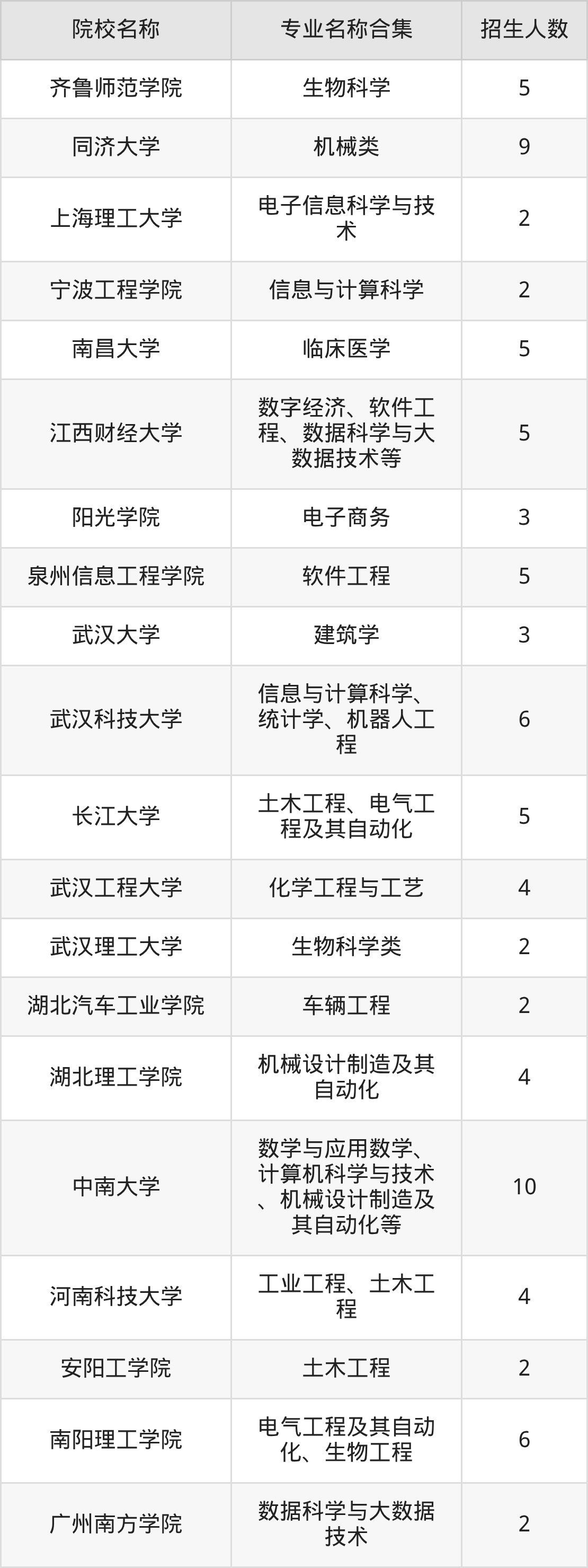 湖北:武汉大学、武汉科技大学、长江大学、武汉工程大学、武汉理工大学、湖北汽车工业学院、湖北理工学院