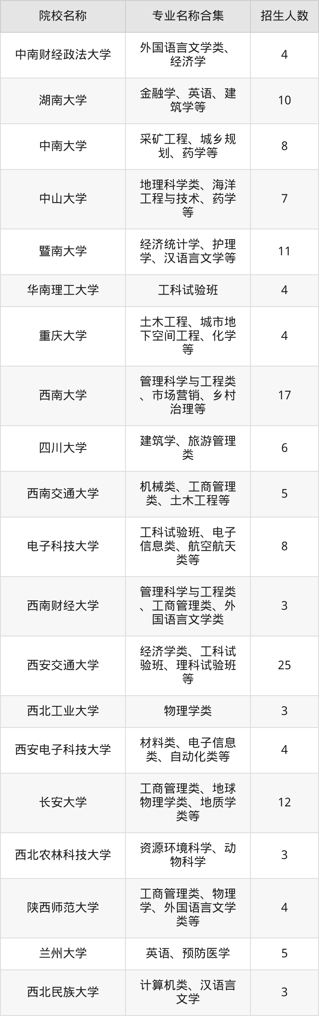 一、山西高考国家专项计划院校名单