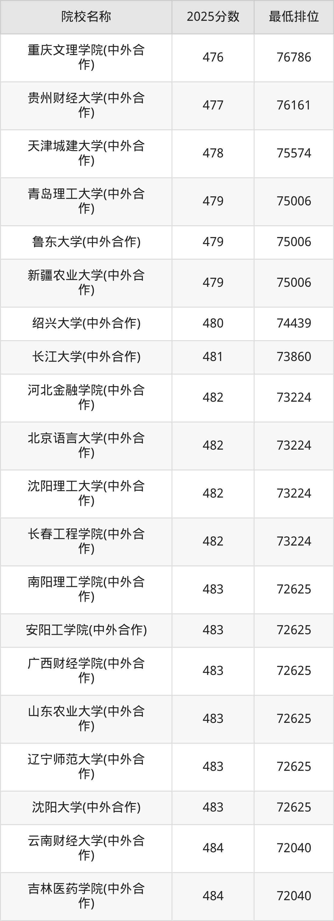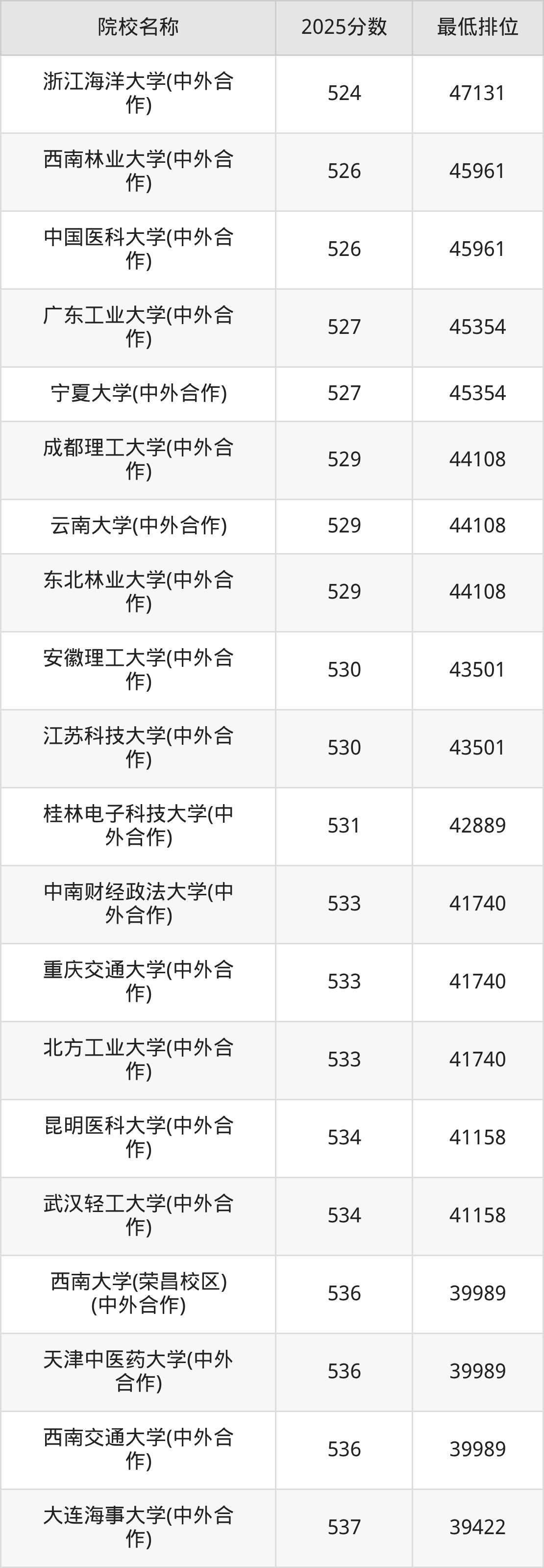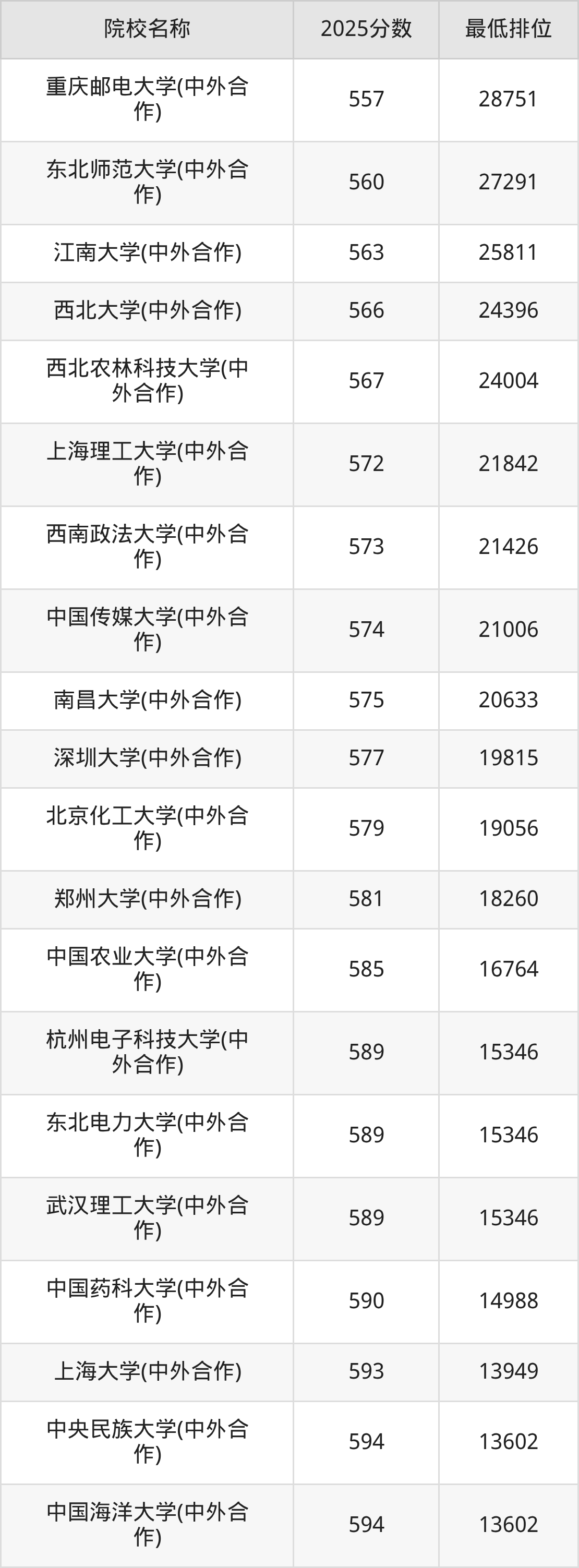 二、重庆高考中外合作办学录取分数线