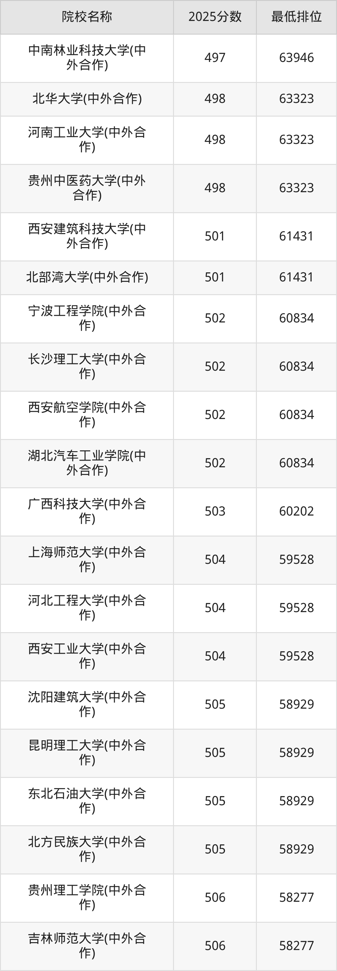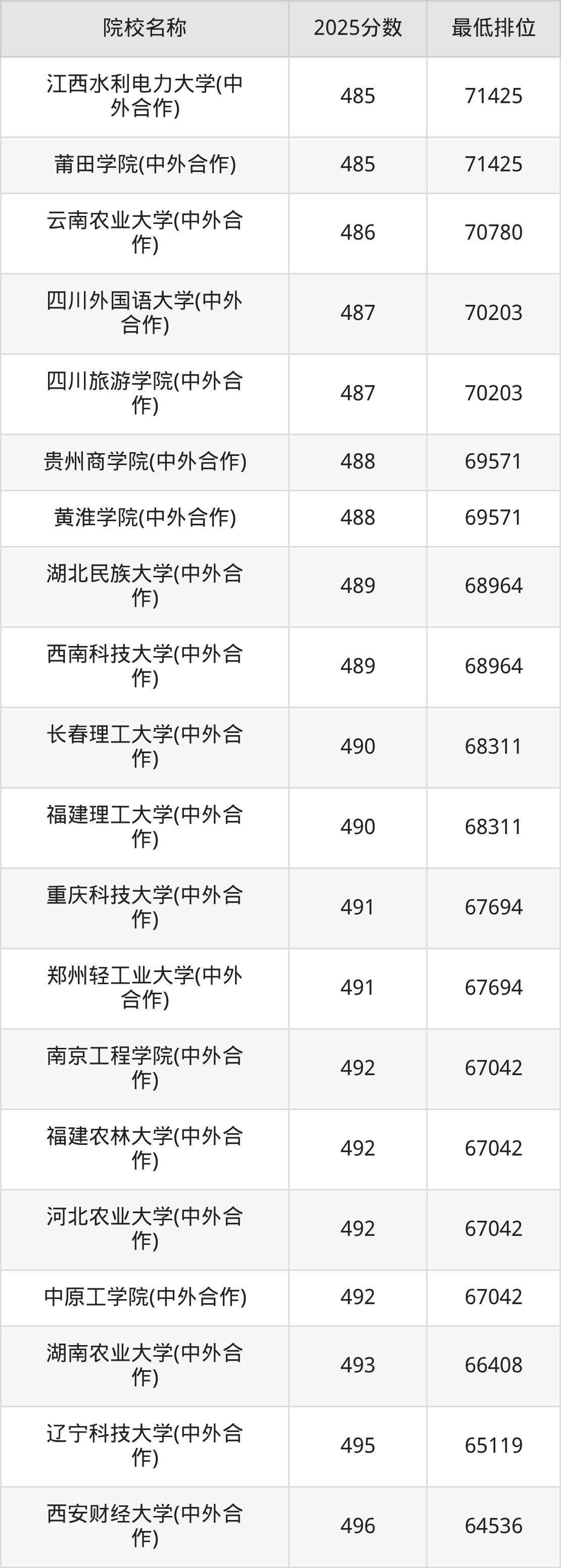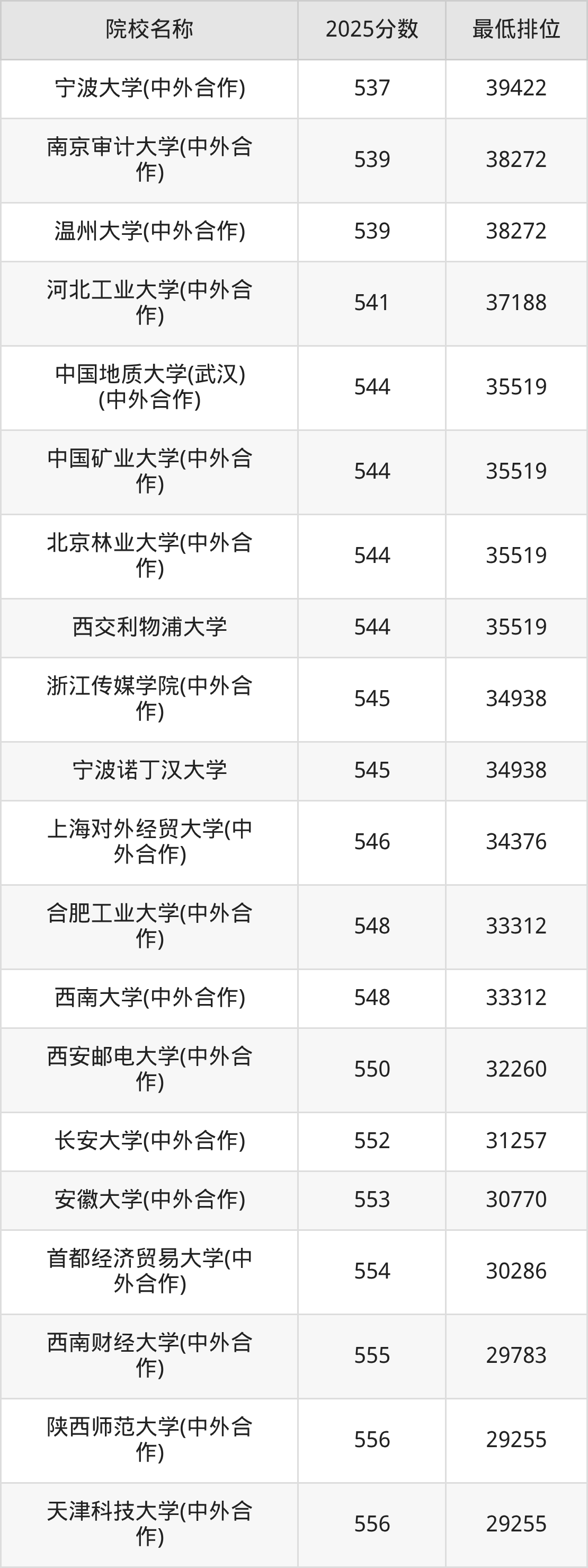 二、重庆高考中外合作办学录取分数线
