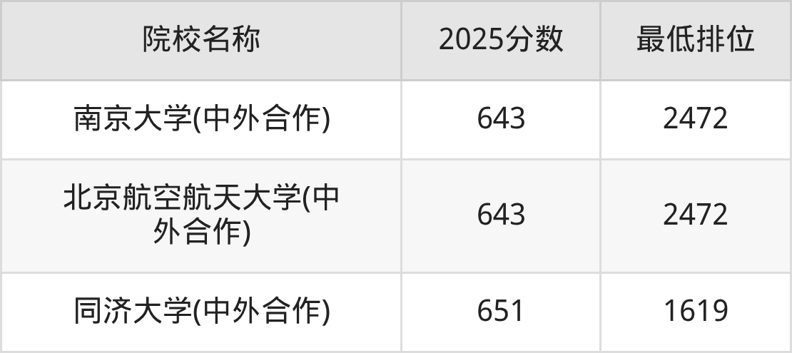 第一梯队(650分+):同济大学(中外合作)(651分)