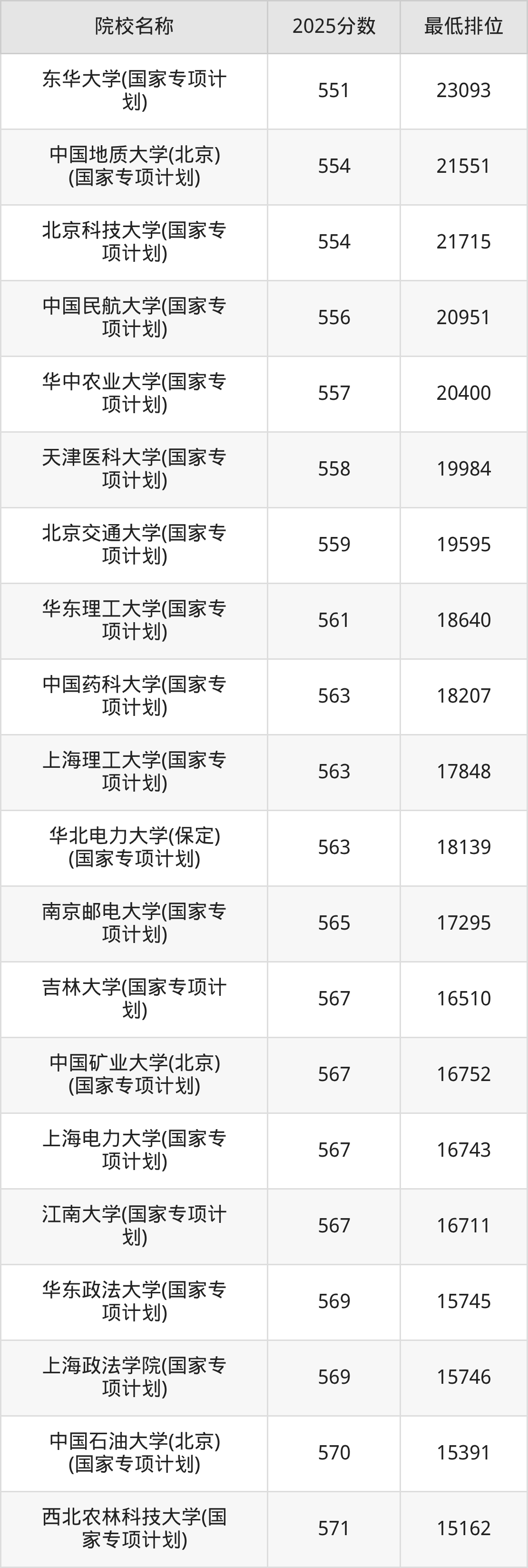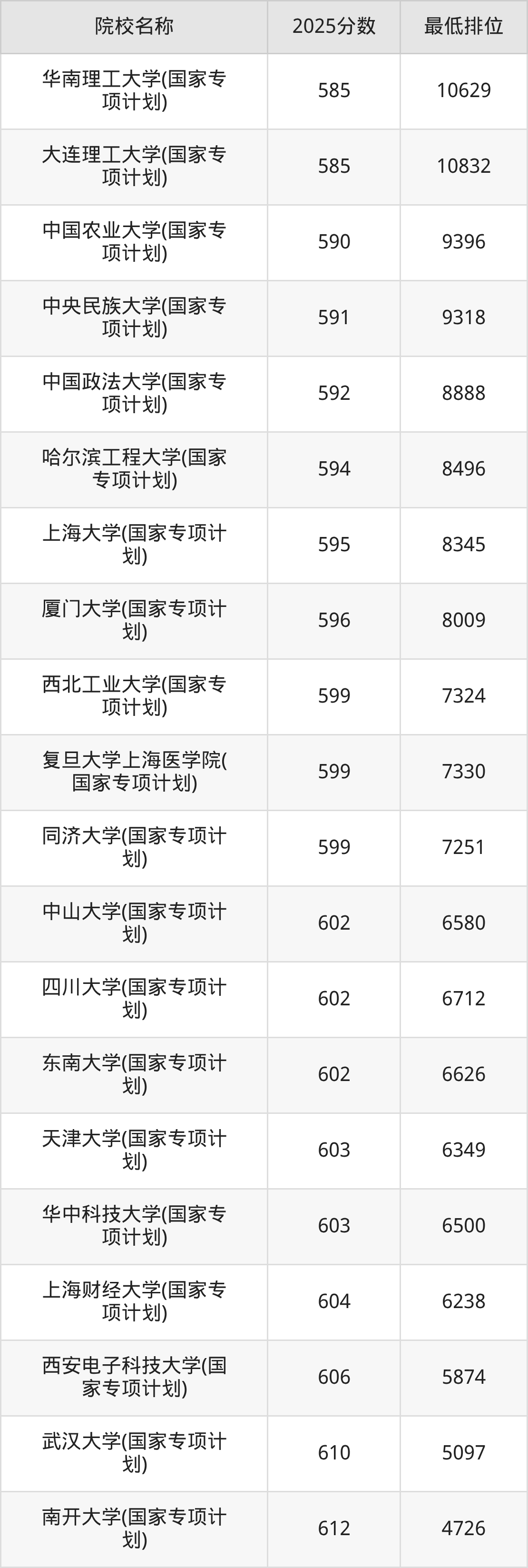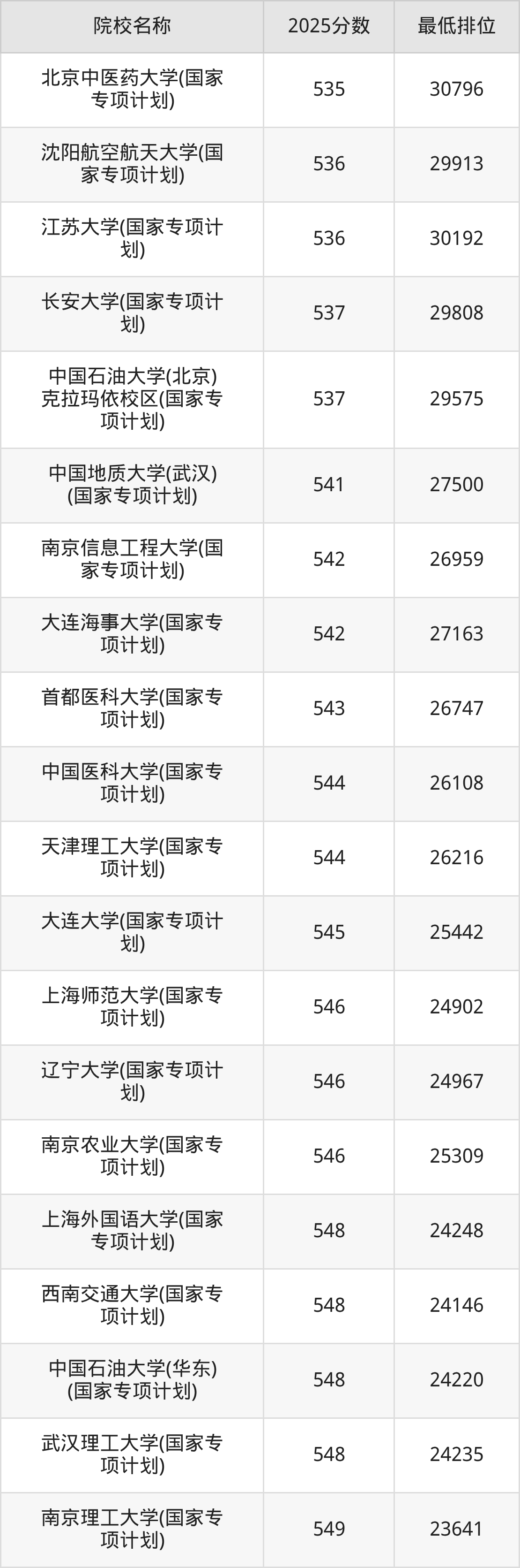 附国家专项计划院校2025年在贵州高考物理类的录取分数线一览表: