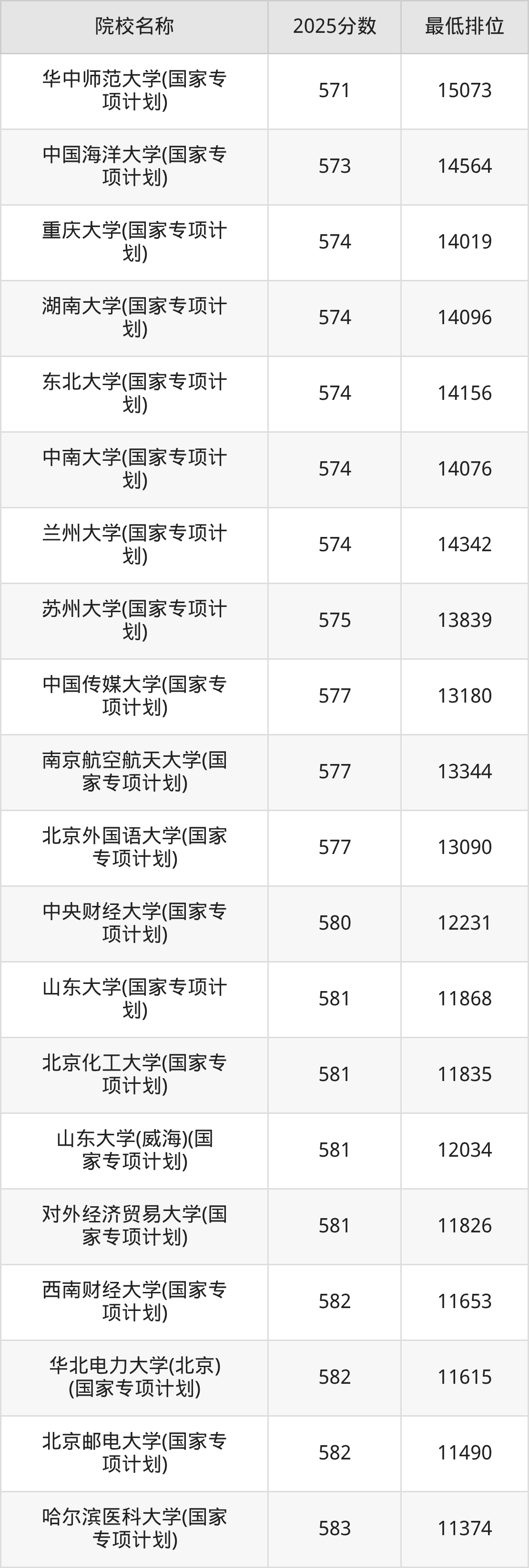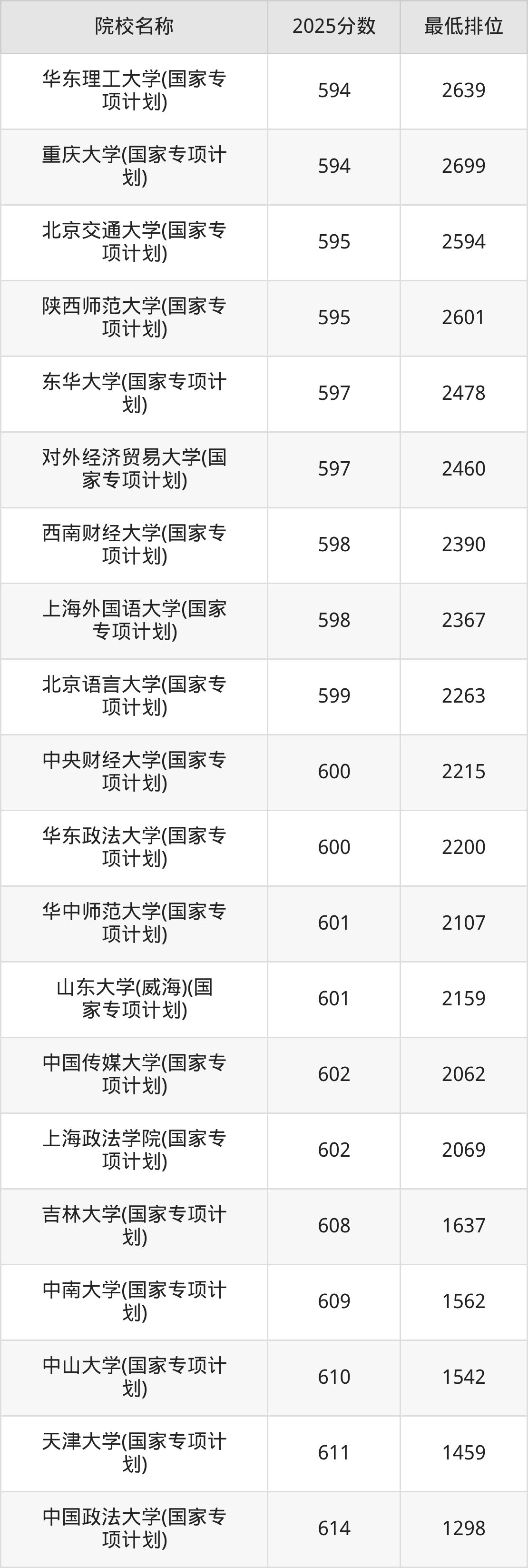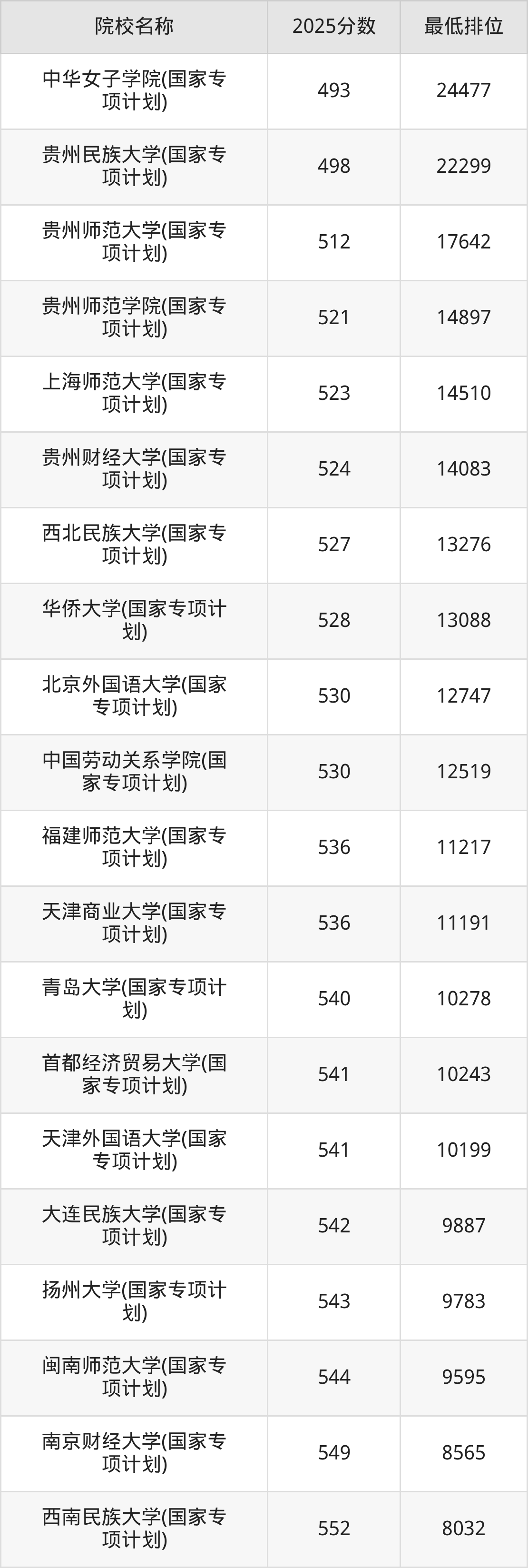 附国家专项计划院校2025年在贵州高考历史类的录取分数线一览表: