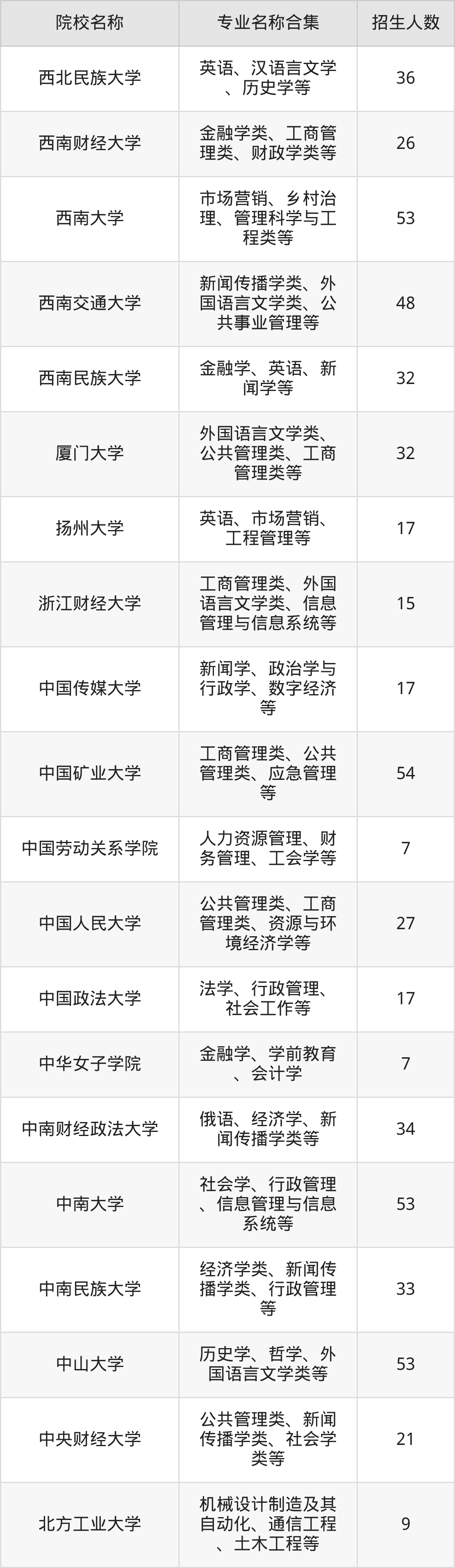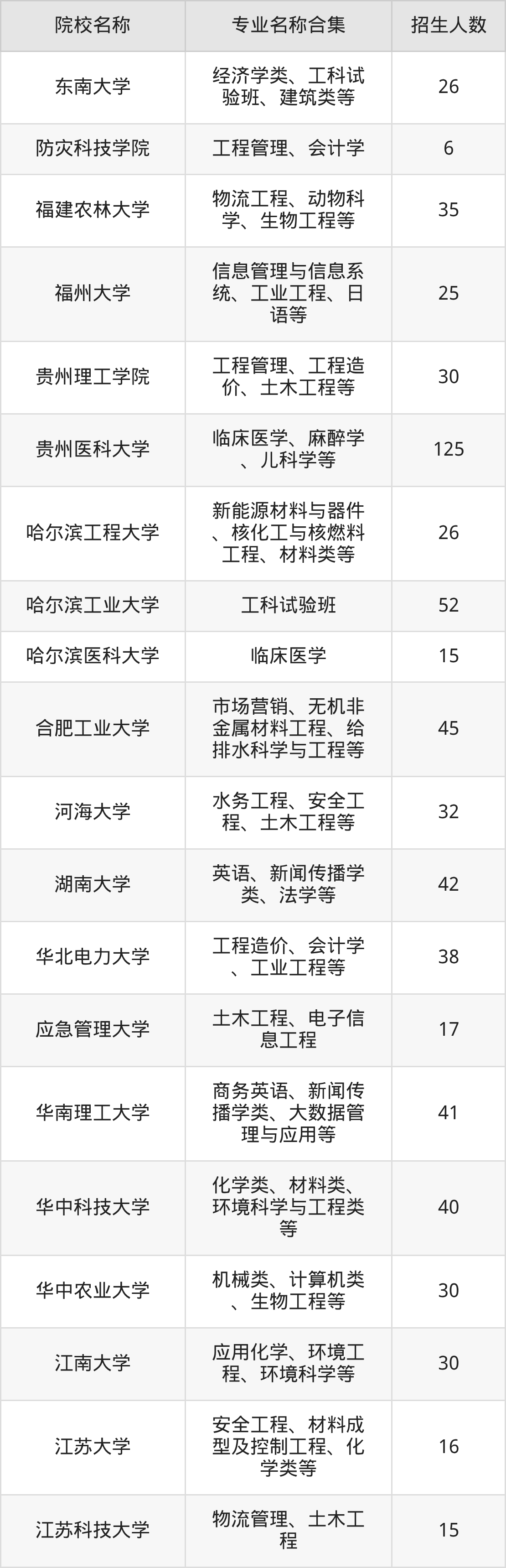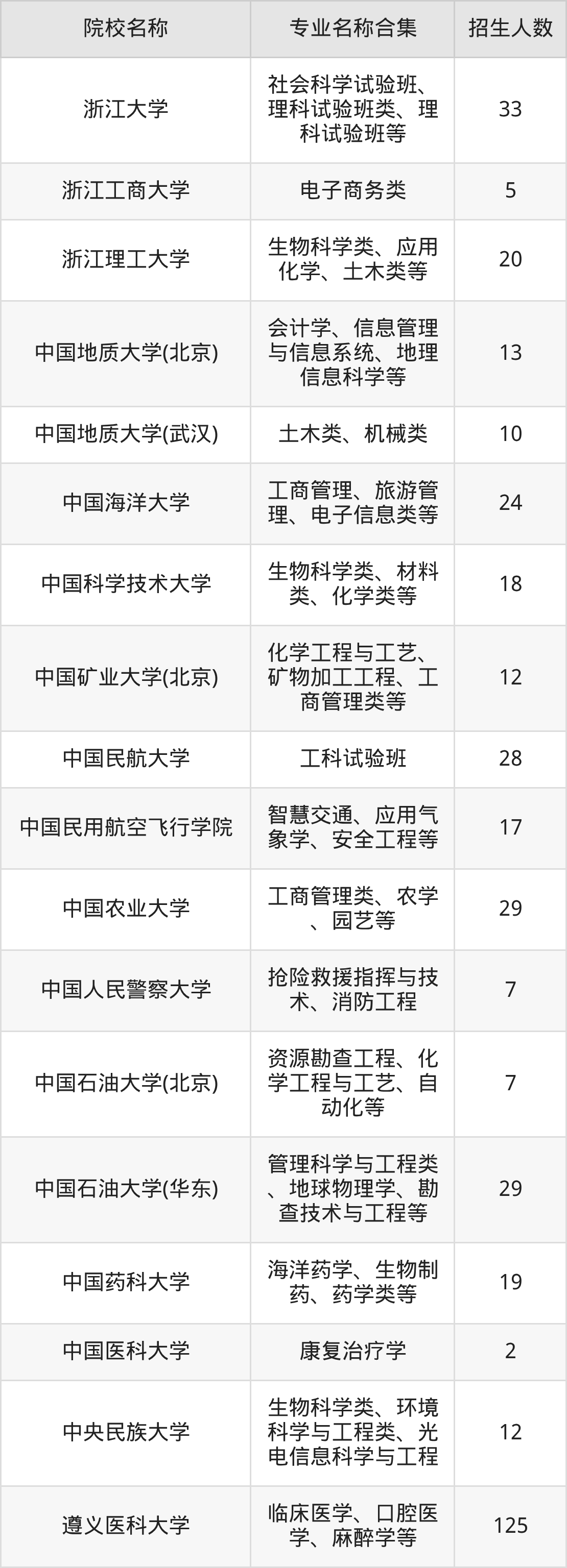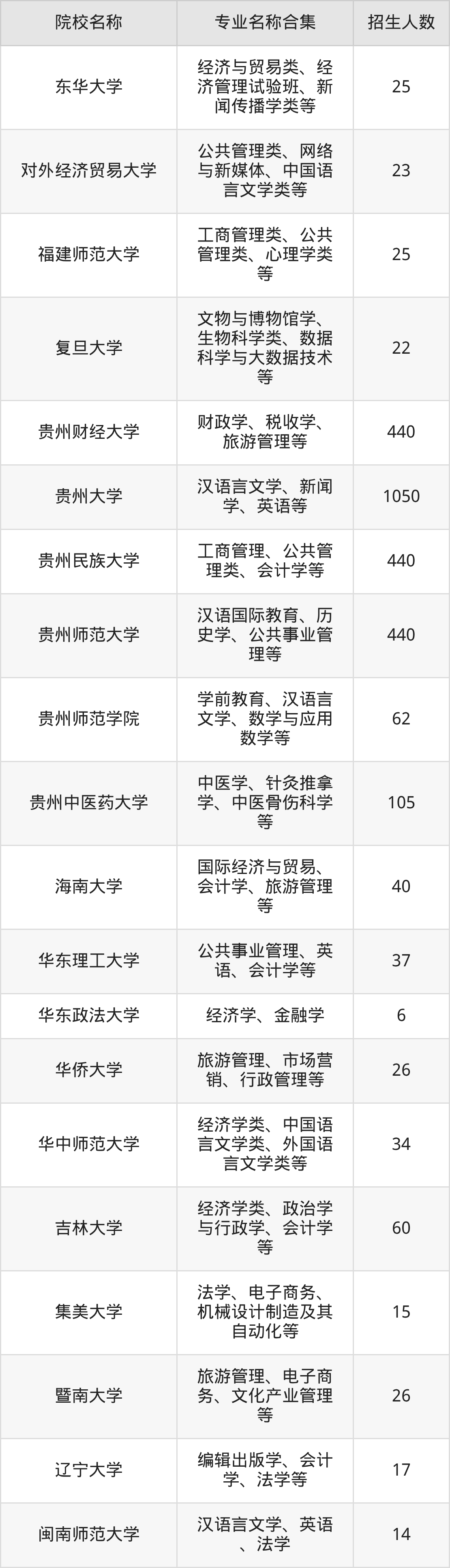附贵州高考国家专项计划院校2025年招生专业、招生计划人数:
