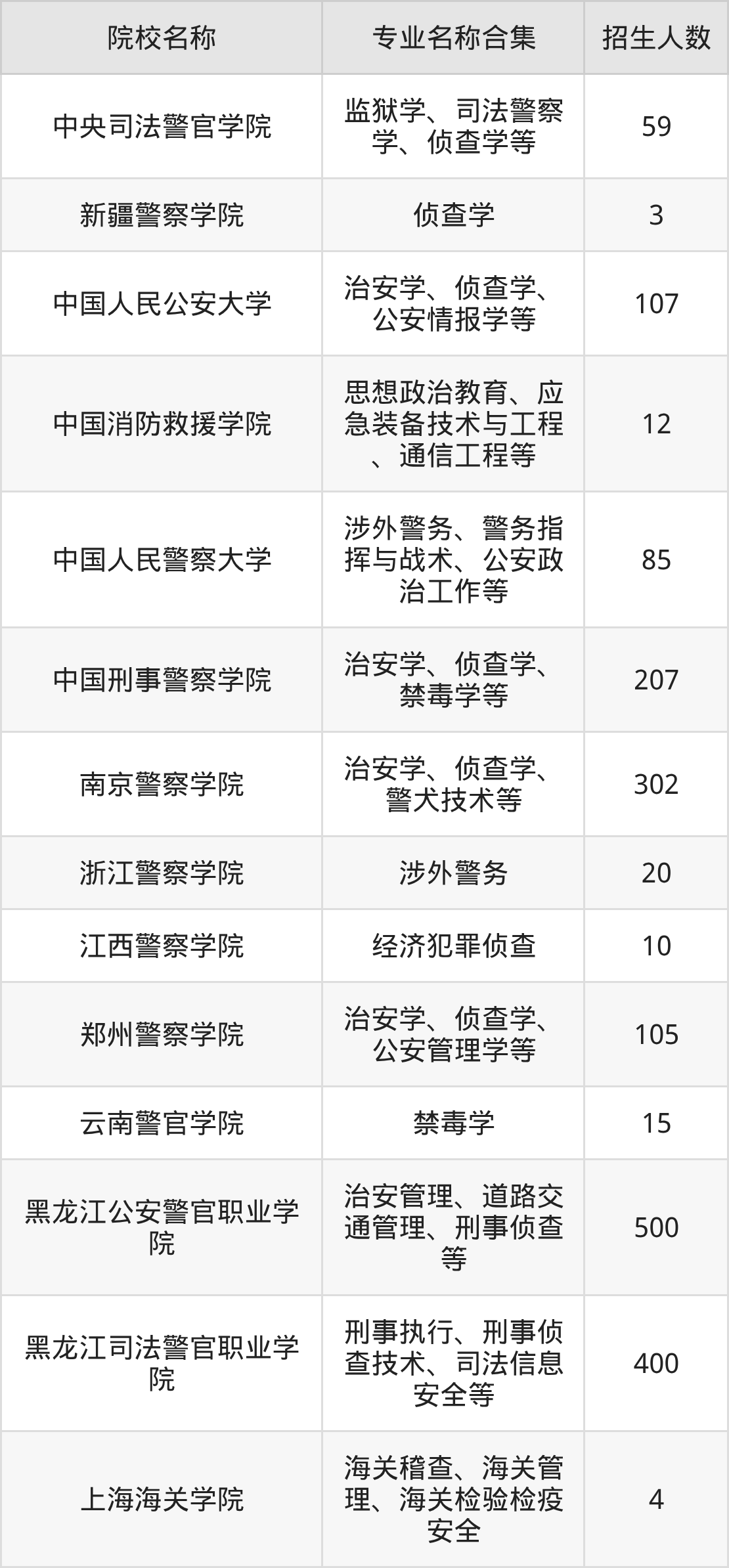 黑龙江:黑龙江公安警官职业学院、黑龙江司法警官职业学院