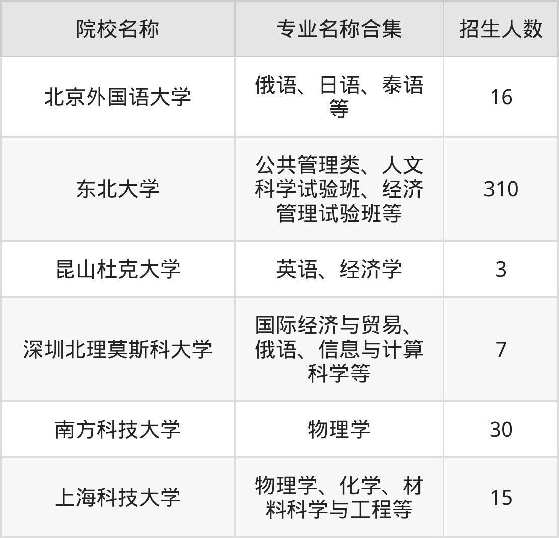 其中,东北大学以310人招生规模居首,南方科技大学30人紧随其后,北京外国语大学招16人,构成招生第一梯队。