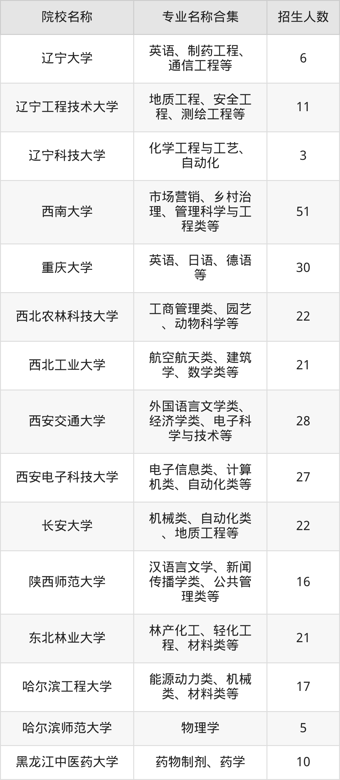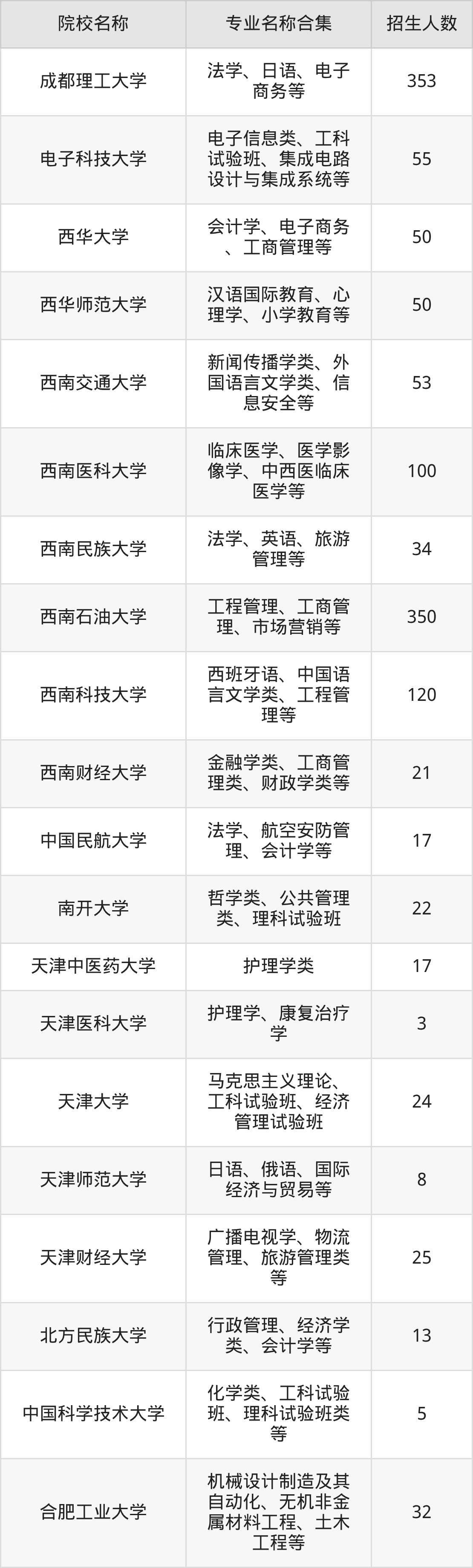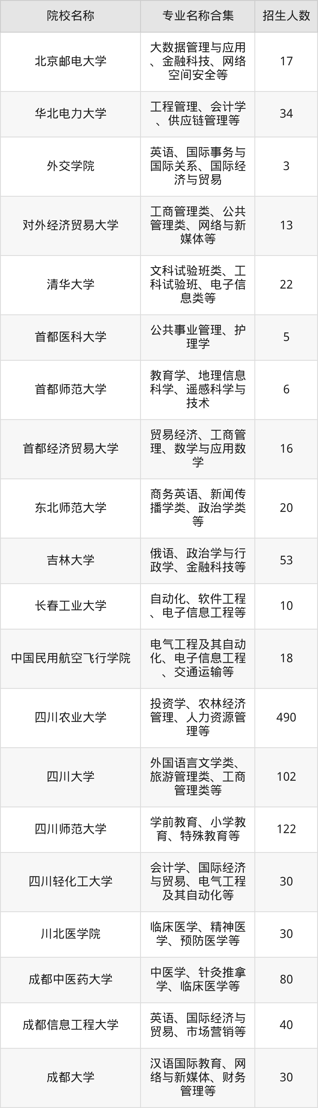 附四川高考国家专项计划院校2025年招生专业、招生计划人数: