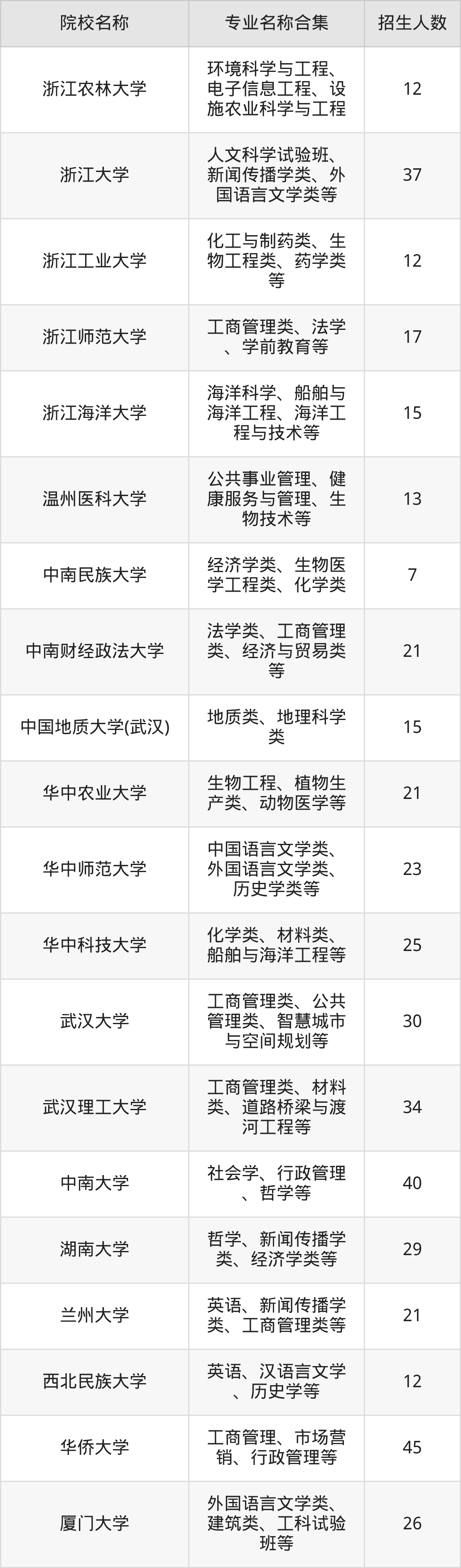 浙江:宁波大学、杭州师范大学、浙江农林大学、浙江大学、浙江工业大学、浙江师范大学、浙江海洋大学、温州医科大学