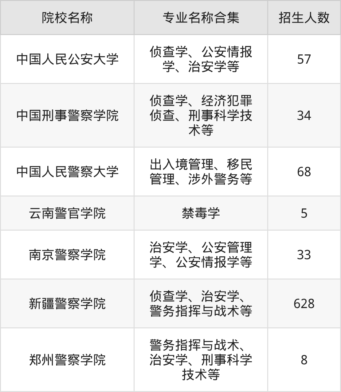 附新疆高考公安警察类院校2025年招生专业、招生计划人数: