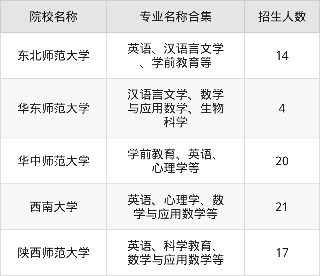 其中,西南大学以21人招生规模居首,华中师范大学20人紧随其后,陕西师范大学招17人,构成招生第一梯队。