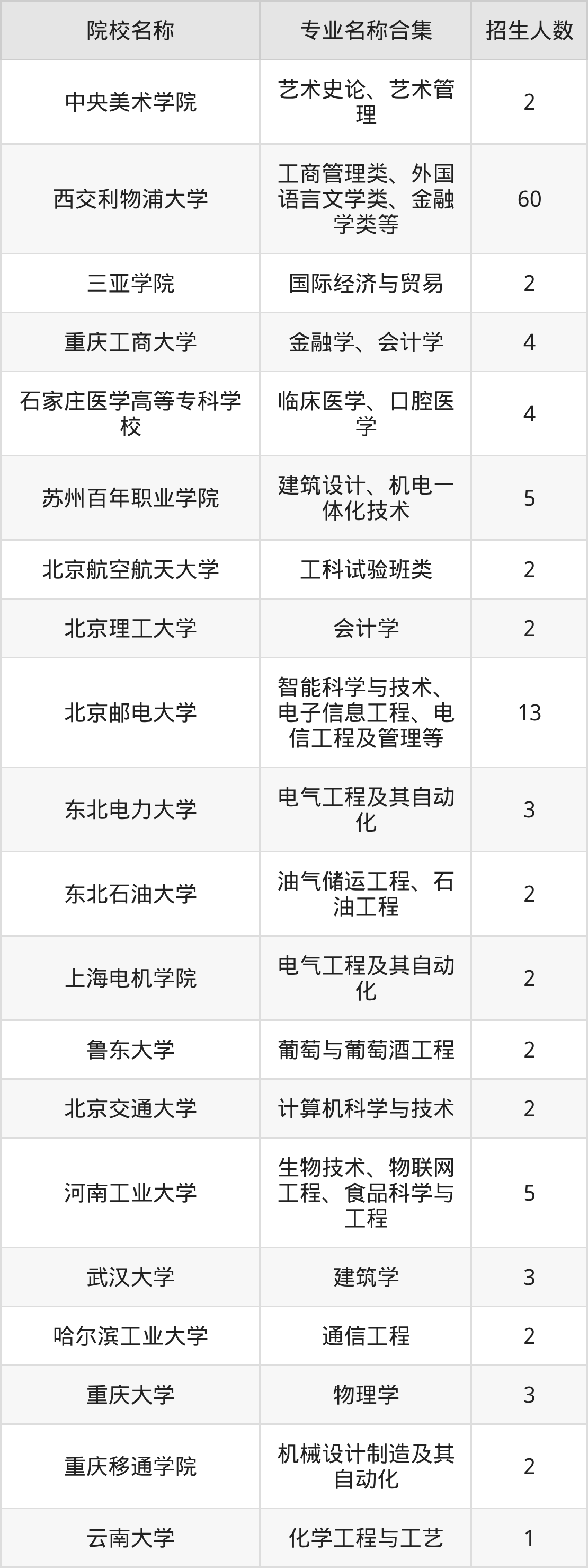 其中,西交利物浦大学以60人招生规模居首,宁夏大学25人紧随其后,北京邮电大学招13人,构成招生第一梯队。