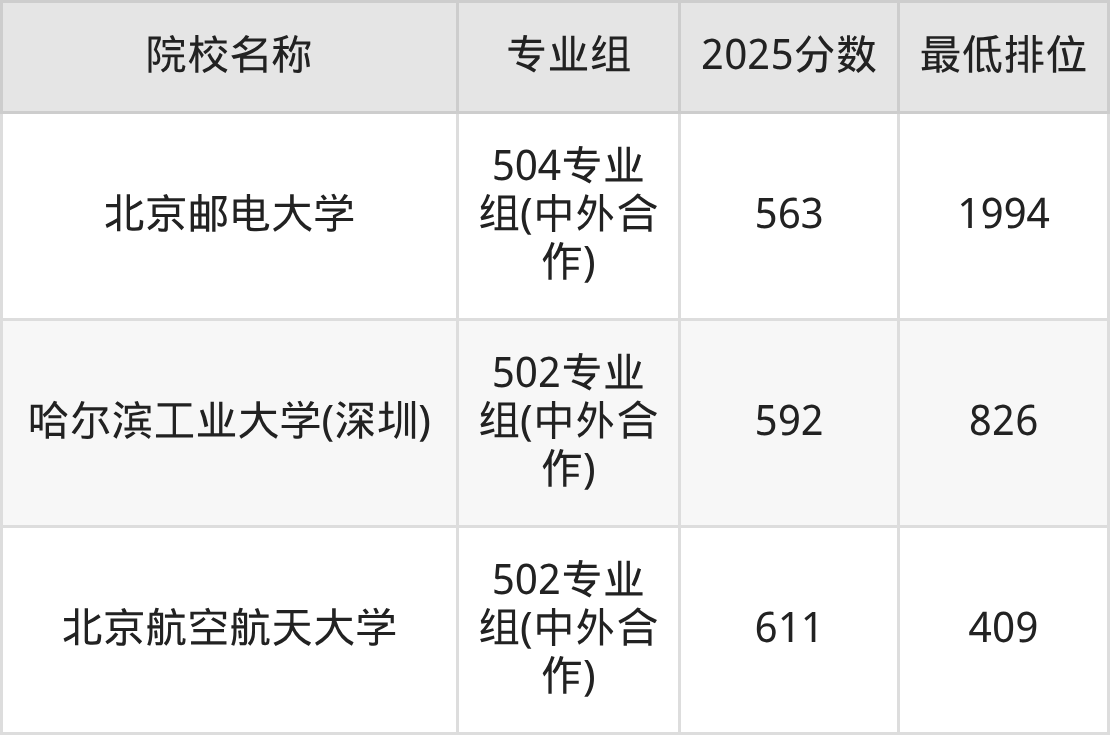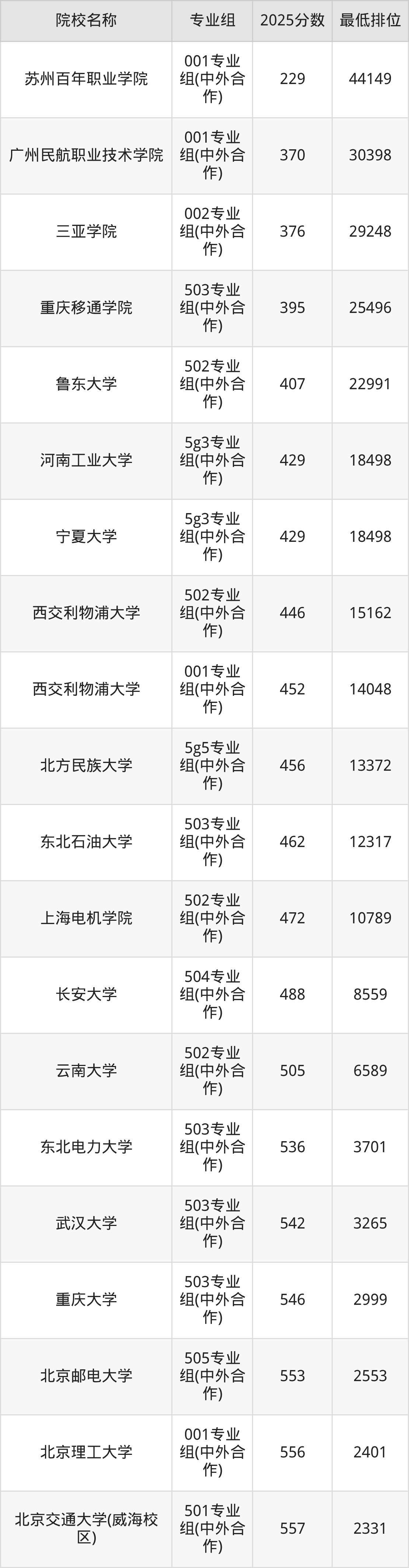 附中外合作办学院校2025年在宁夏高考物理类的录取分数线一览表: