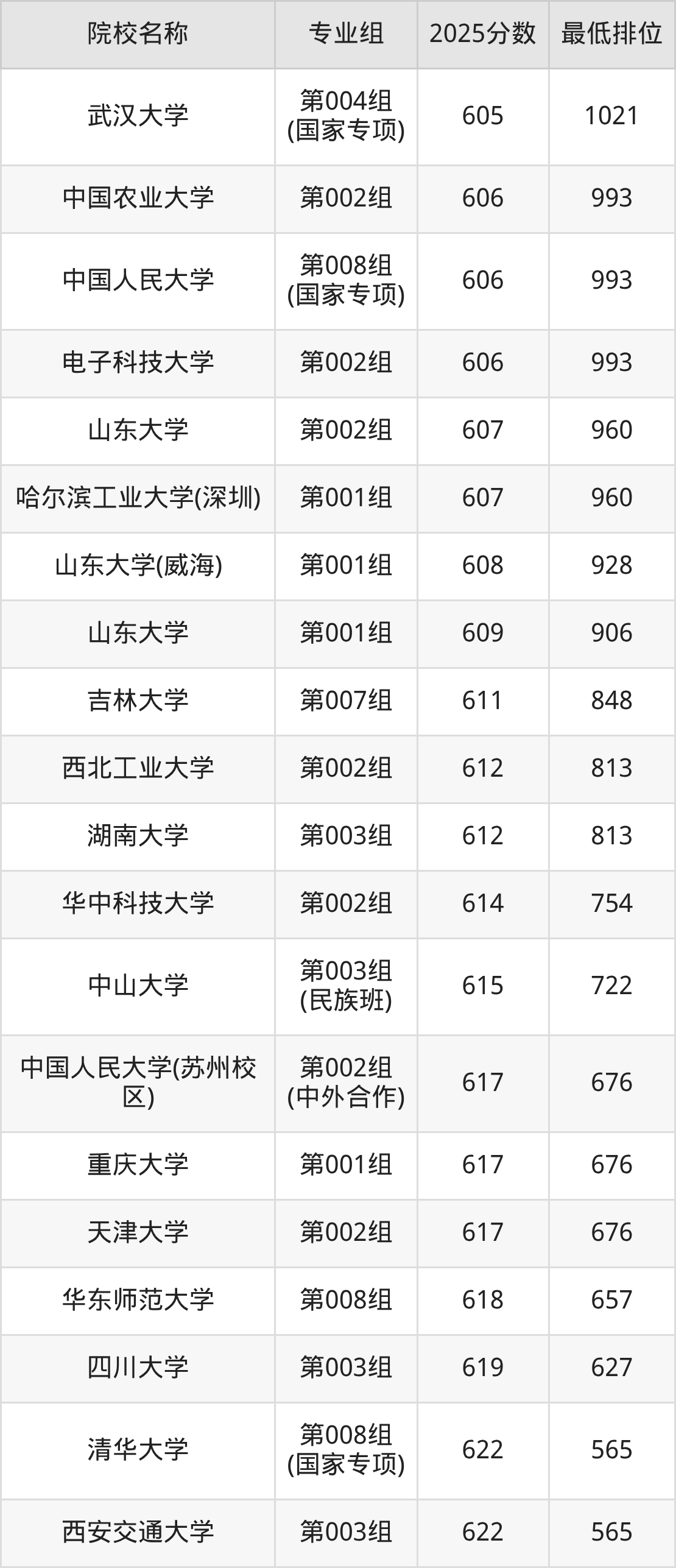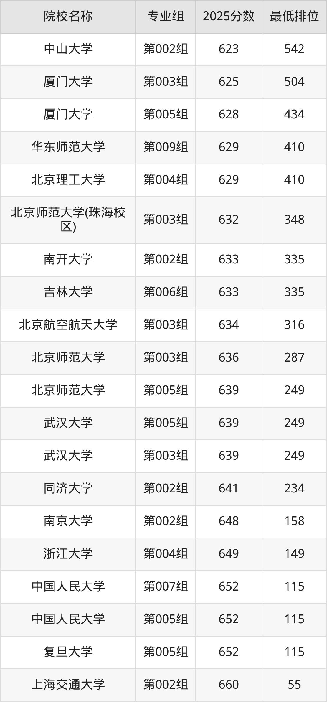 附985院校2025年在吉林高考历史类的录取分数线一览表: