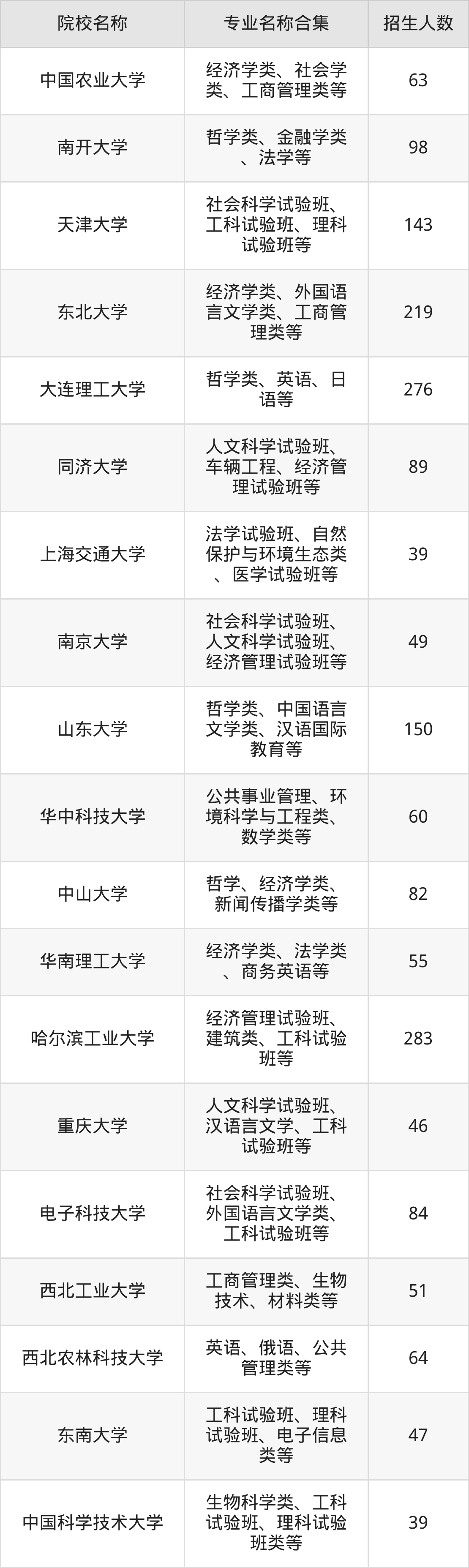 北京:北京大学、中国人民大学、清华大学、北京师范大学、北京理工大学、中央民族大学、北京航空航天大学、中国农业大学