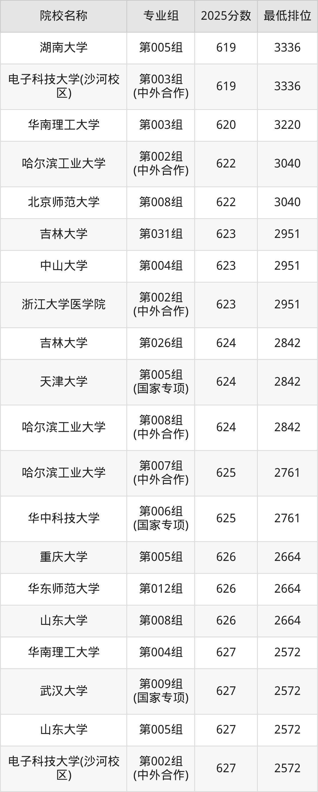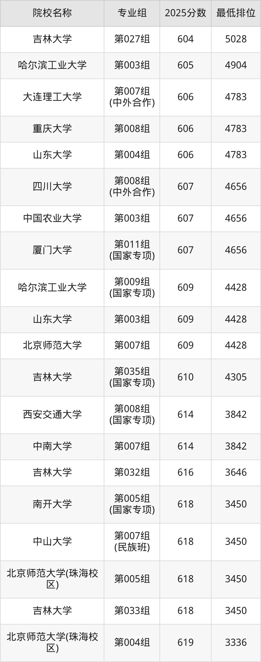附985院校2025年在吉林高考物理类的录取分数线一览表: