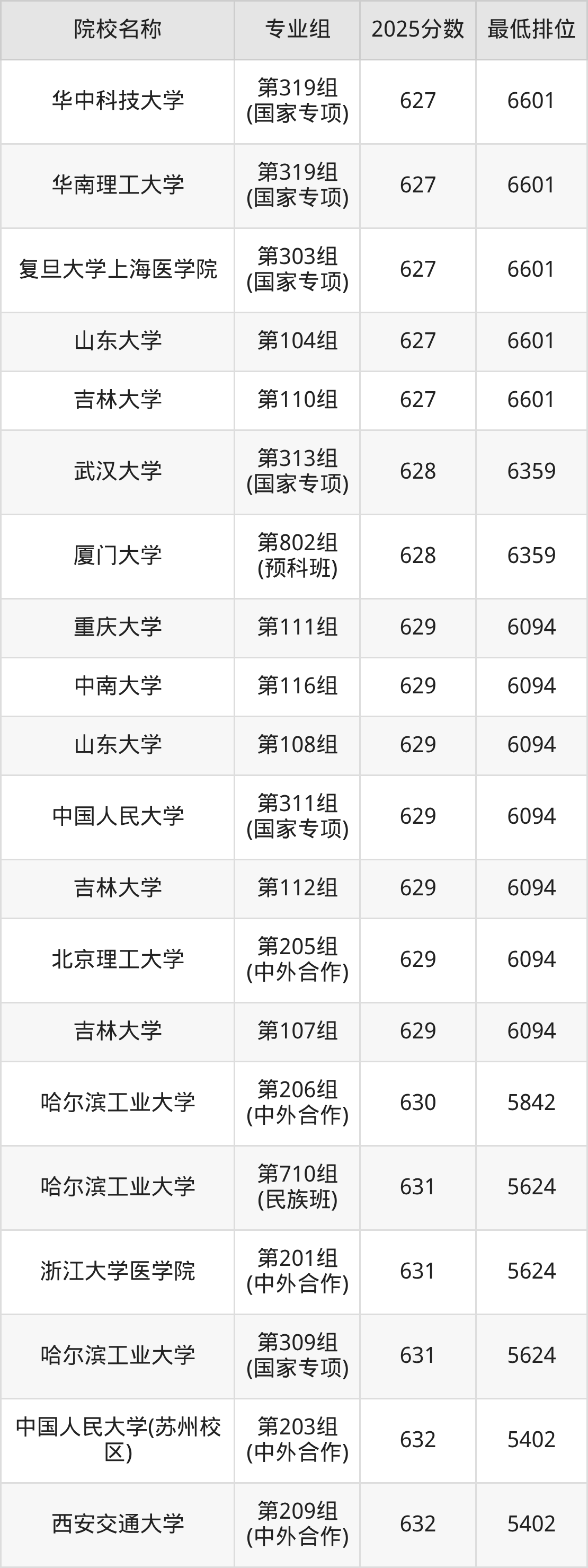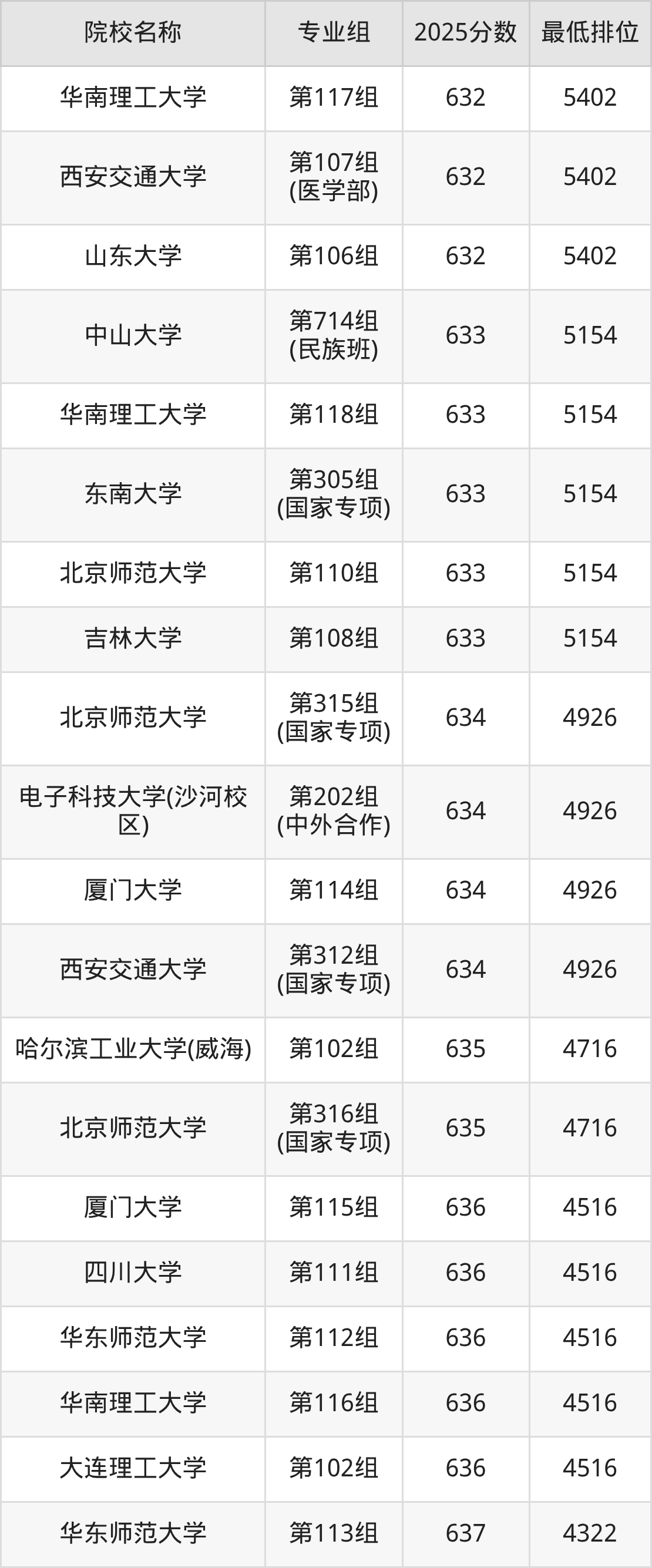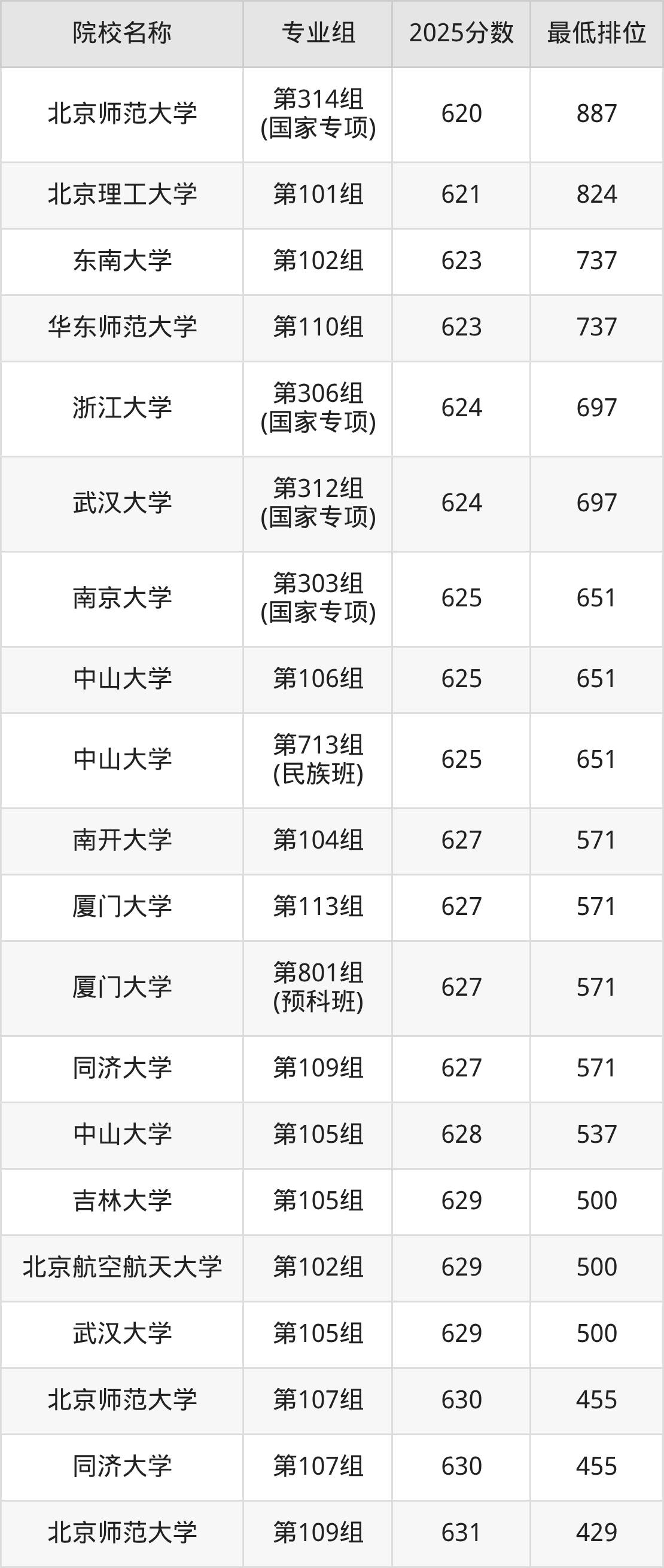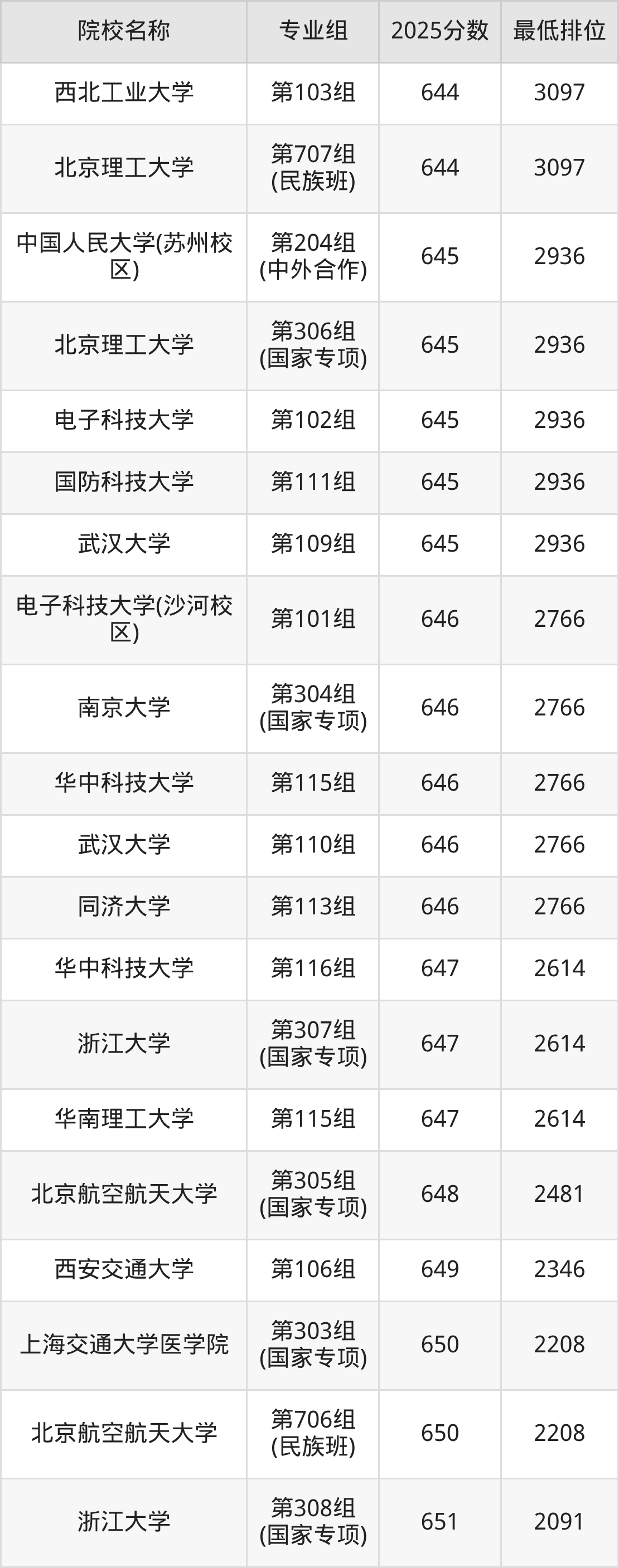 第一梯队(660分+):北京大学(第103组是660分)、清华大学(第102组是665分)
