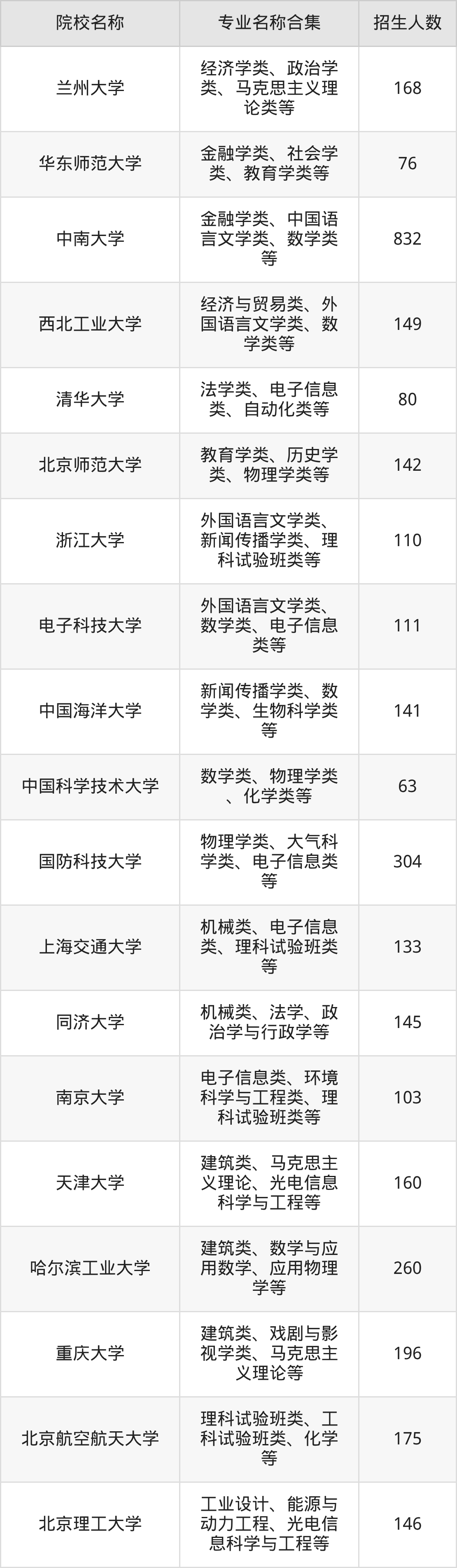 附湖南高考985院校2025年招生专业、招生计划人数: