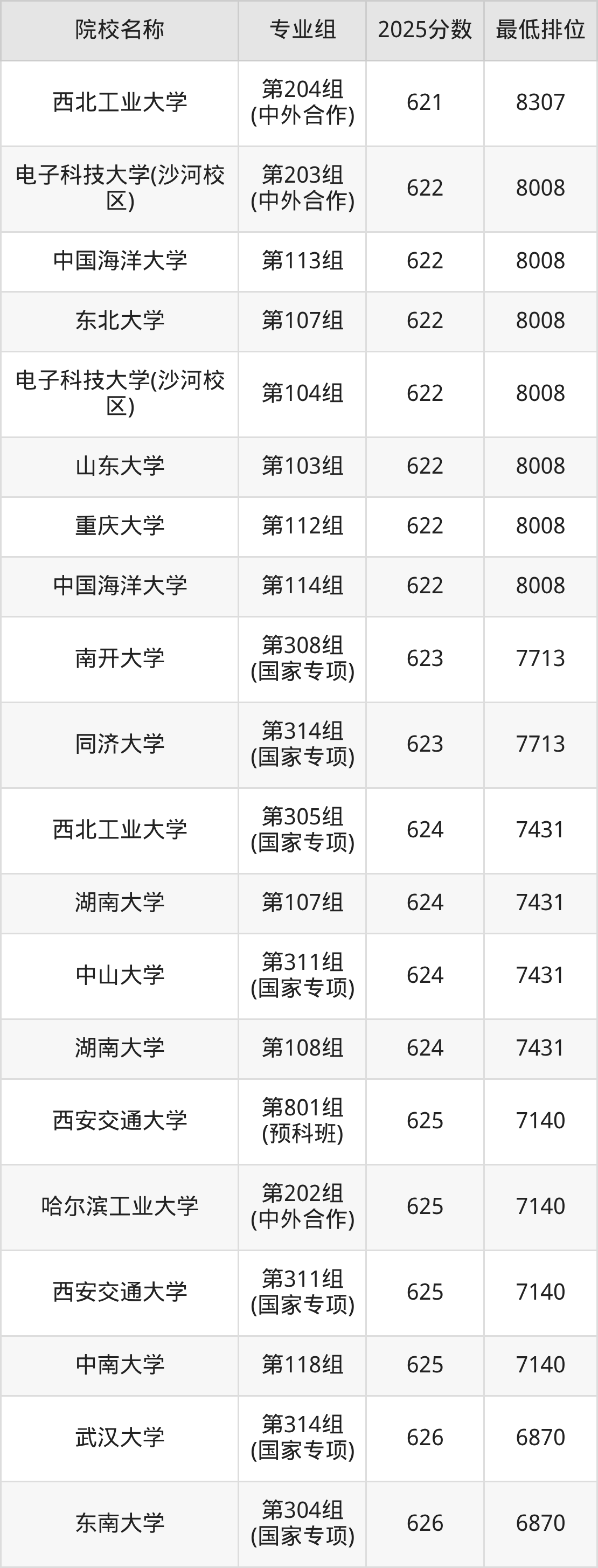第一梯队(680分+):武汉大学(第107组是680分)、上海交通大学(第103组是685分)、北京大学(第104组是685分)、清华大学(第103组是685分)