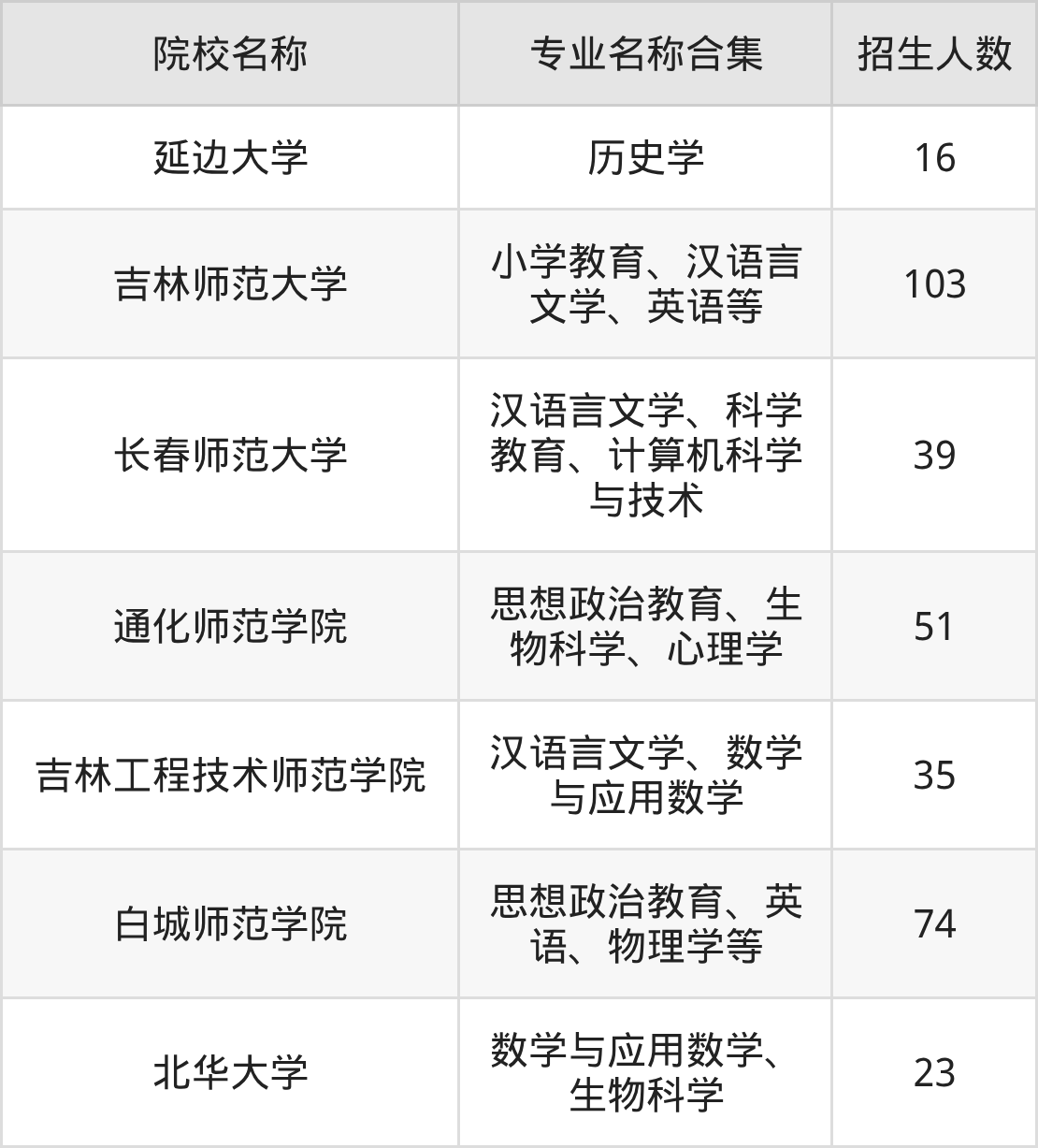 吉林高考地方公费师范生院校完整名单一览表如下。