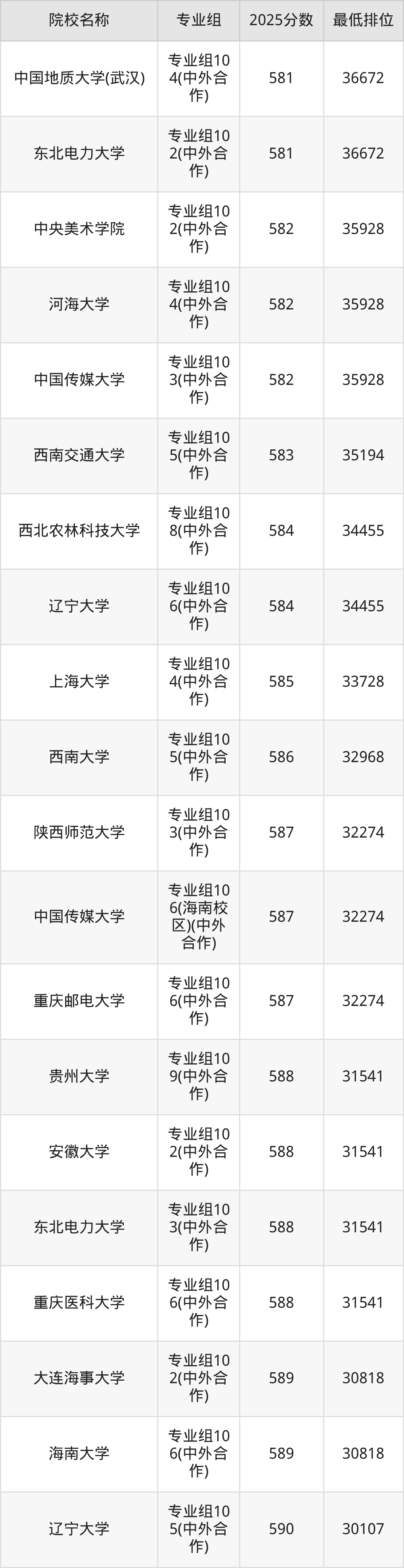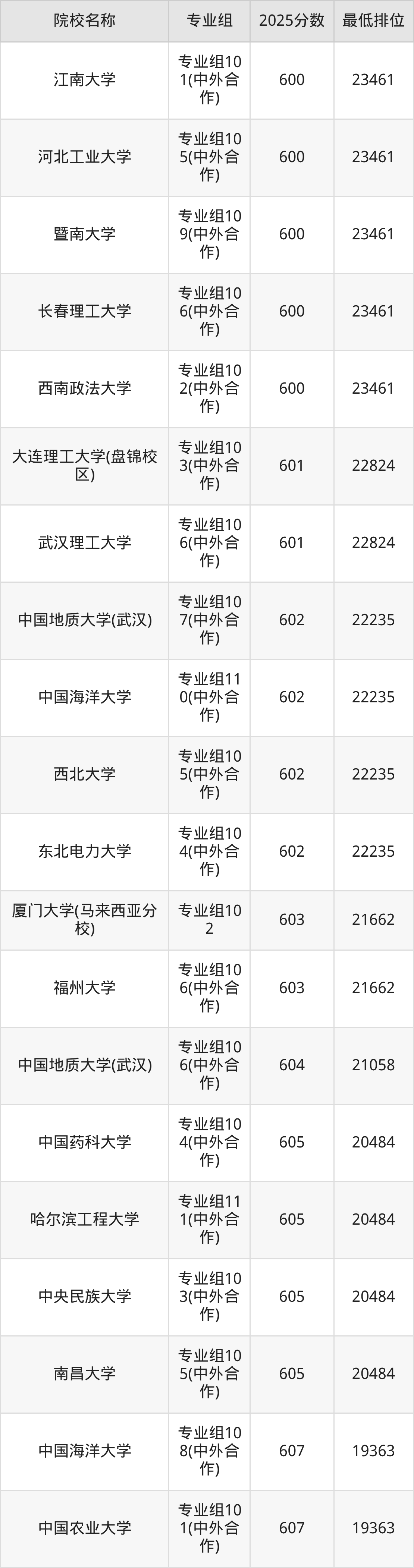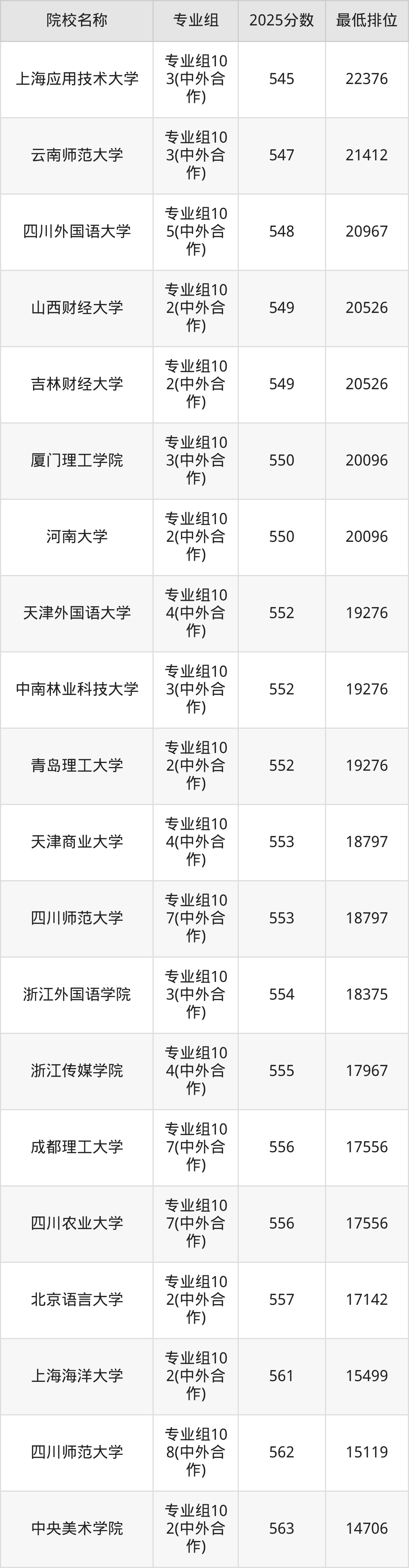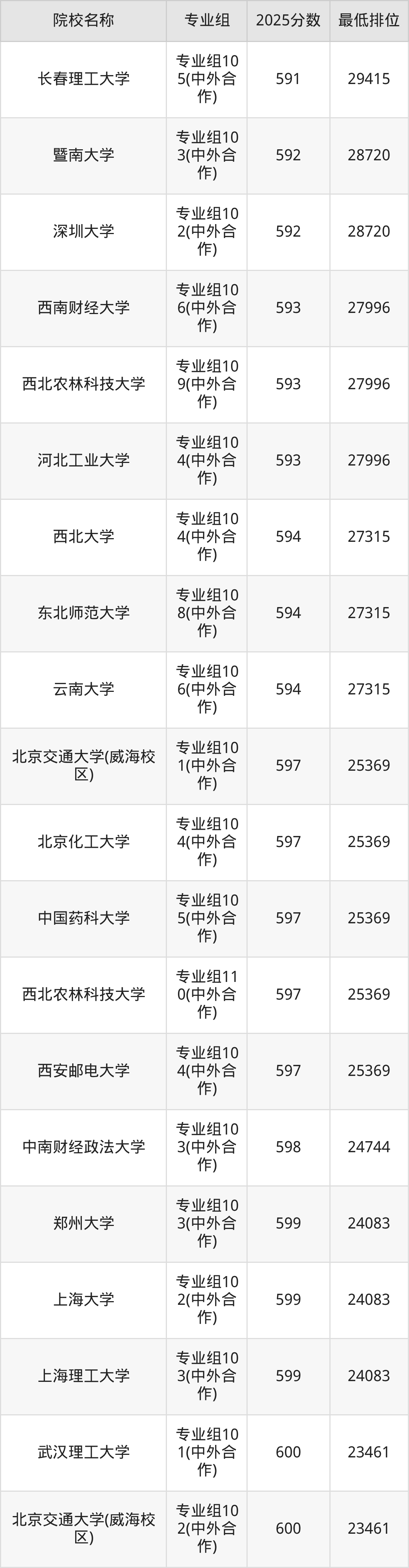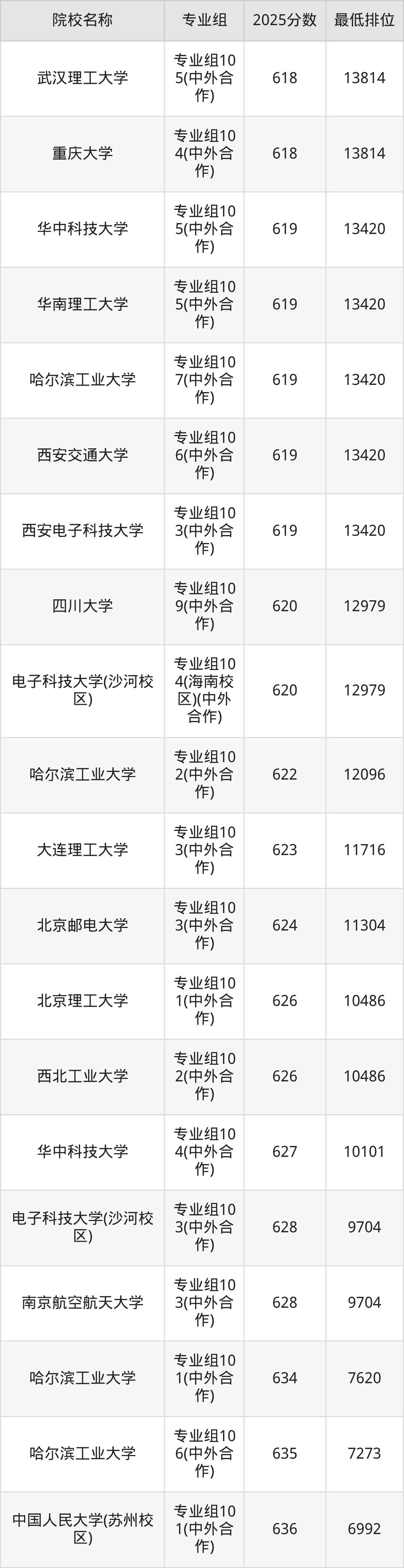 附中外合作办学院校2025年在四川高考物理类的录取分数线一览表: