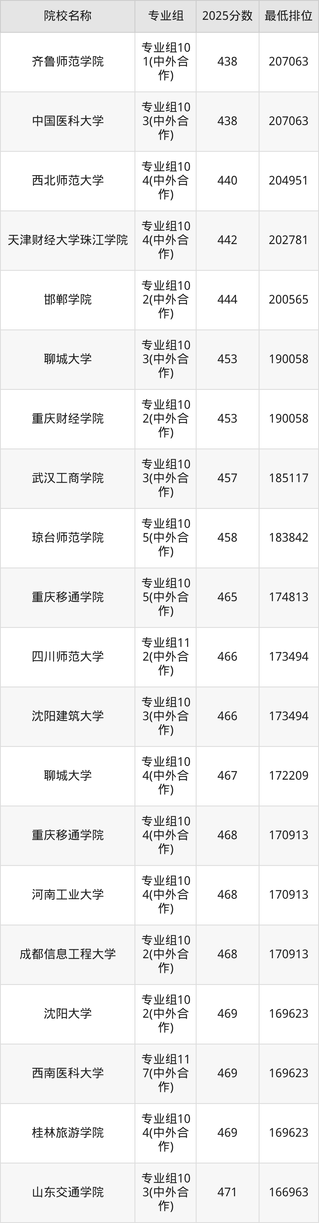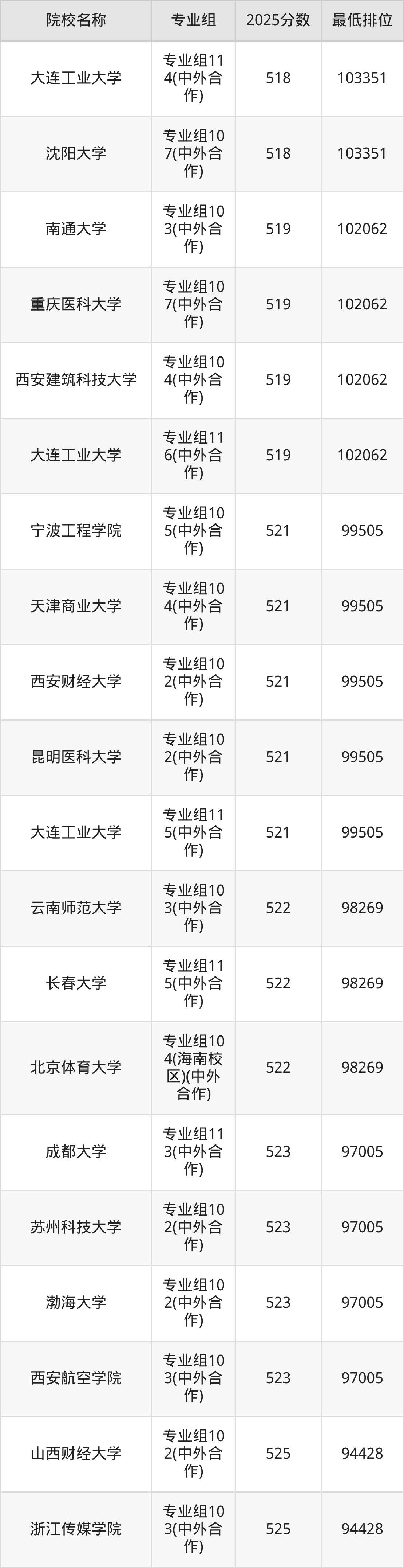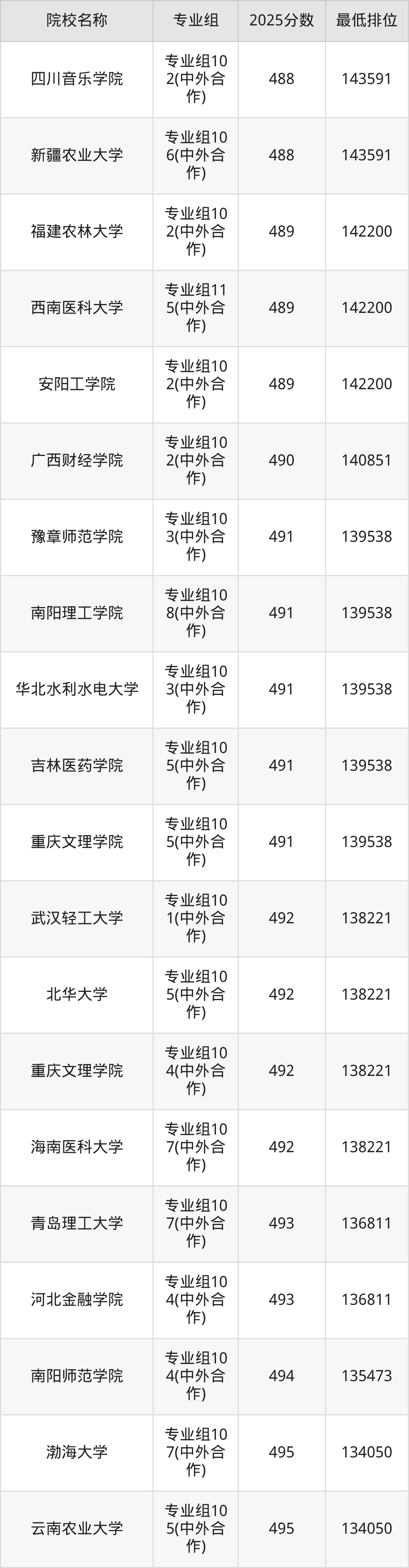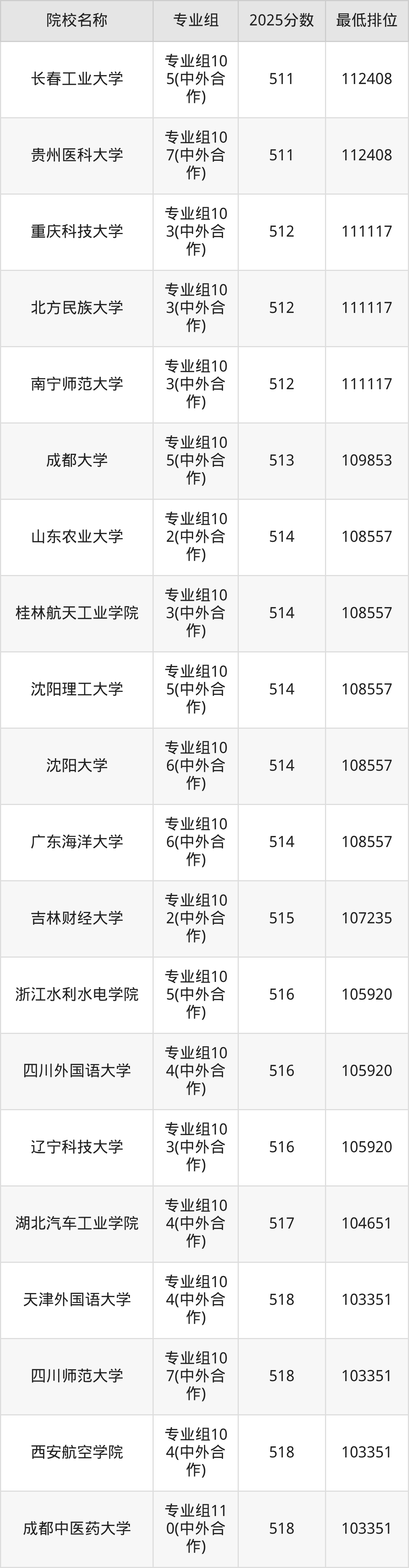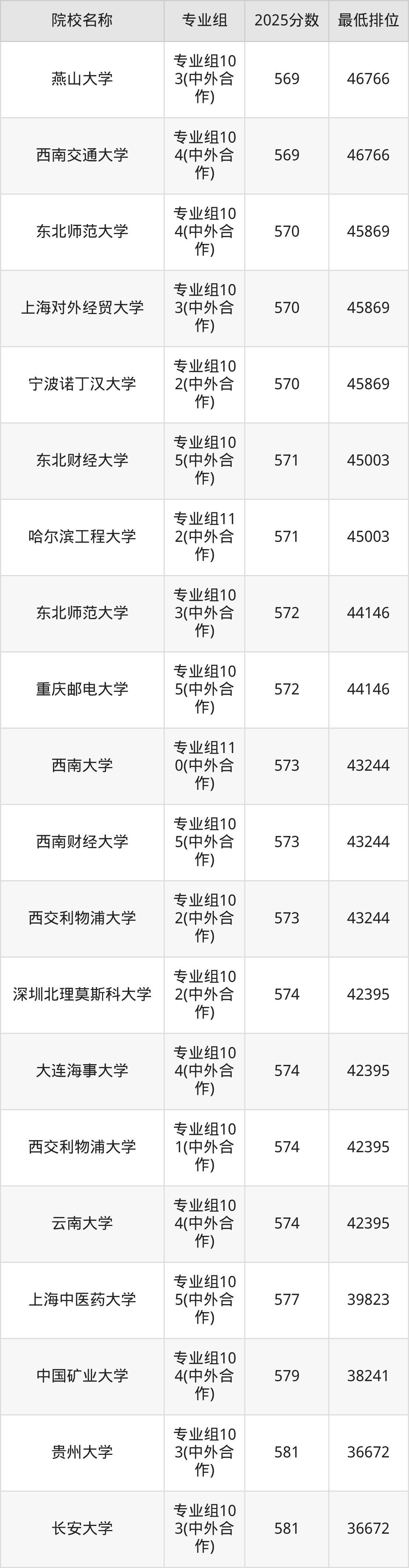 附中外合作办学院校2025年在四川高考物理类的录取分数线一览表: