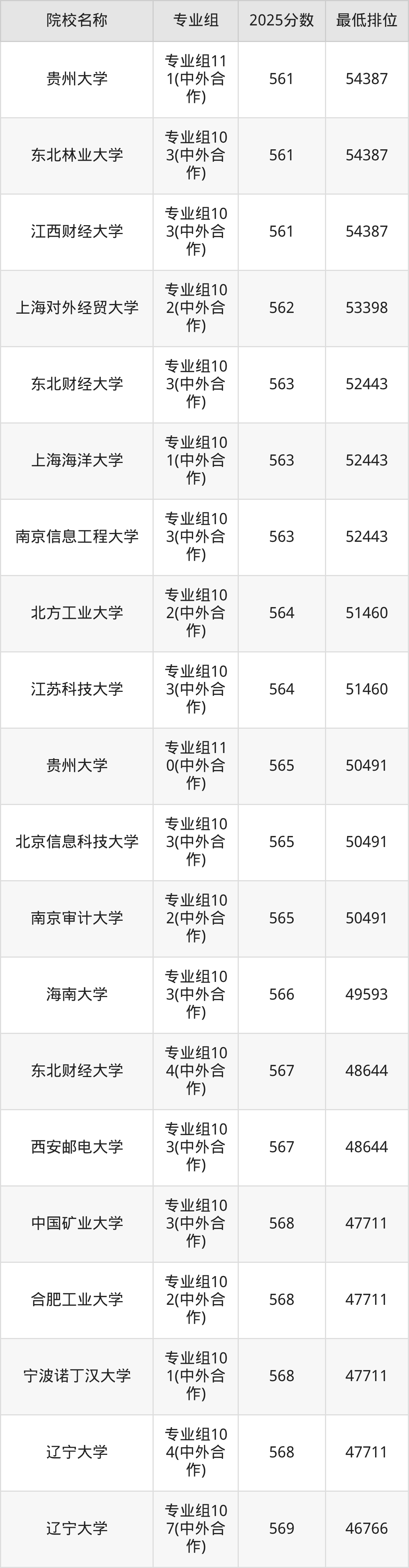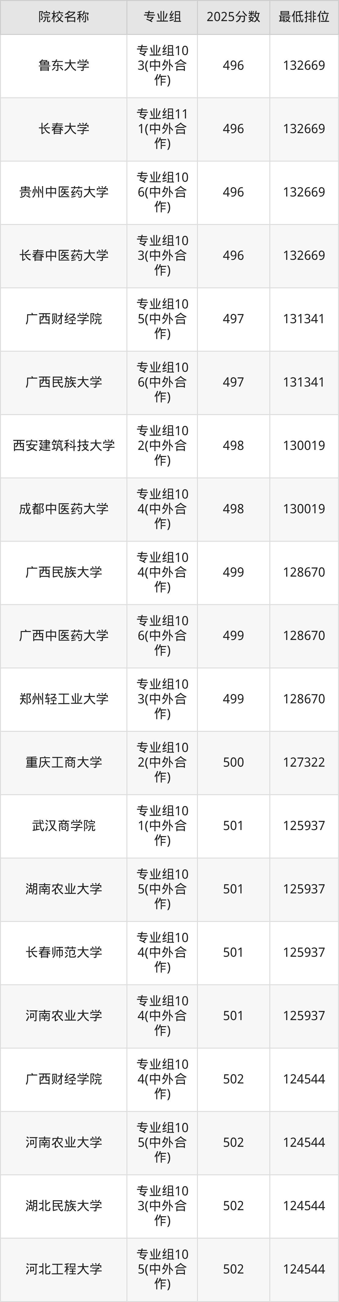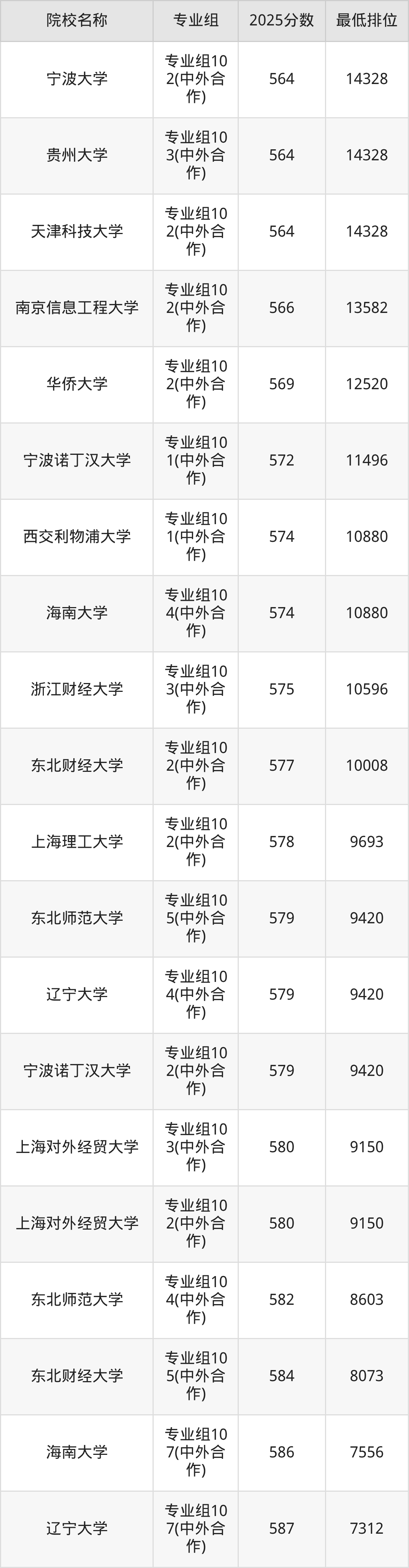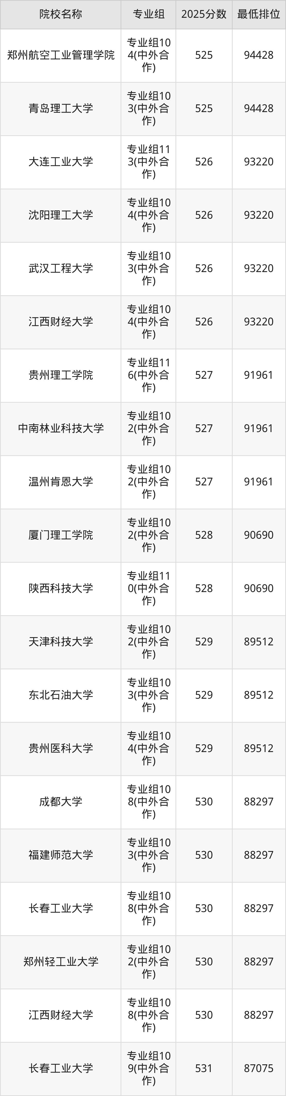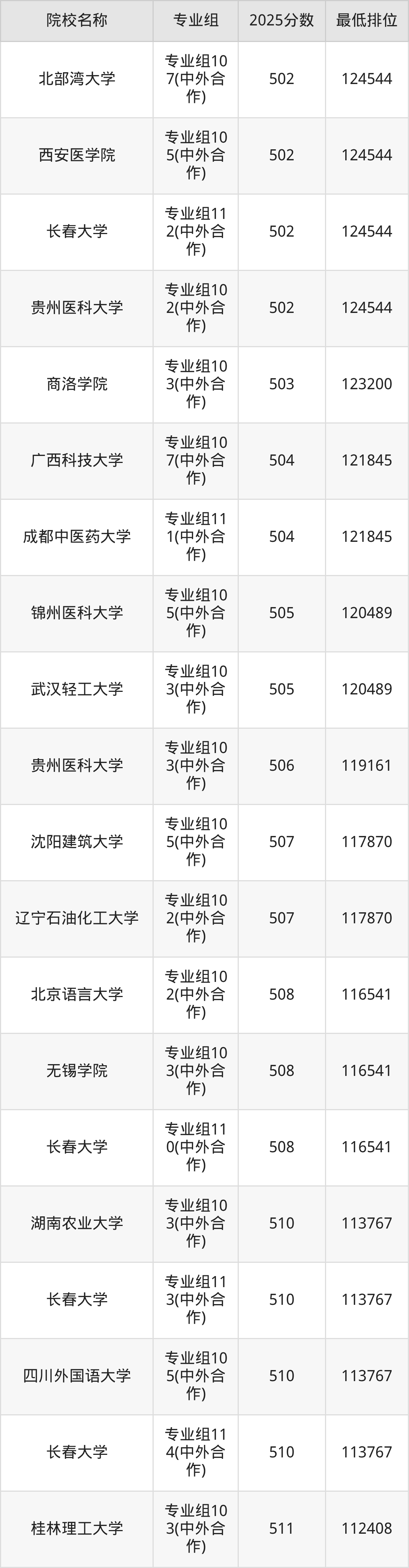 附中外合作办学院校2025年在四川高考物理类的录取分数线一览表: