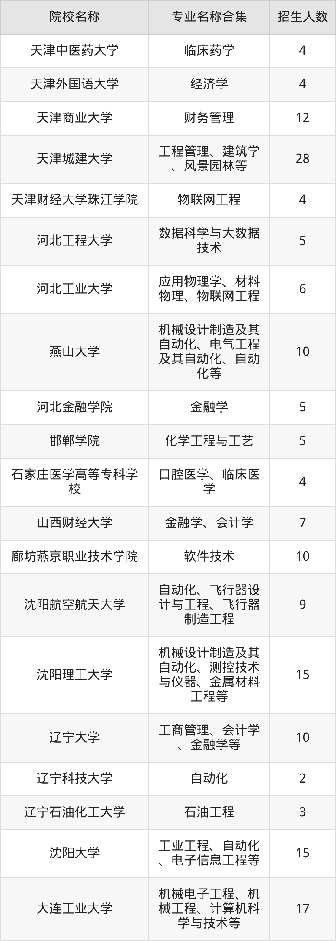 天津:中国民航大学、天津科技大学、天津中医药大学、天津外国语大学、天津商业大学、天津城建大学、天津财经大学珠江学院、河北工业大学