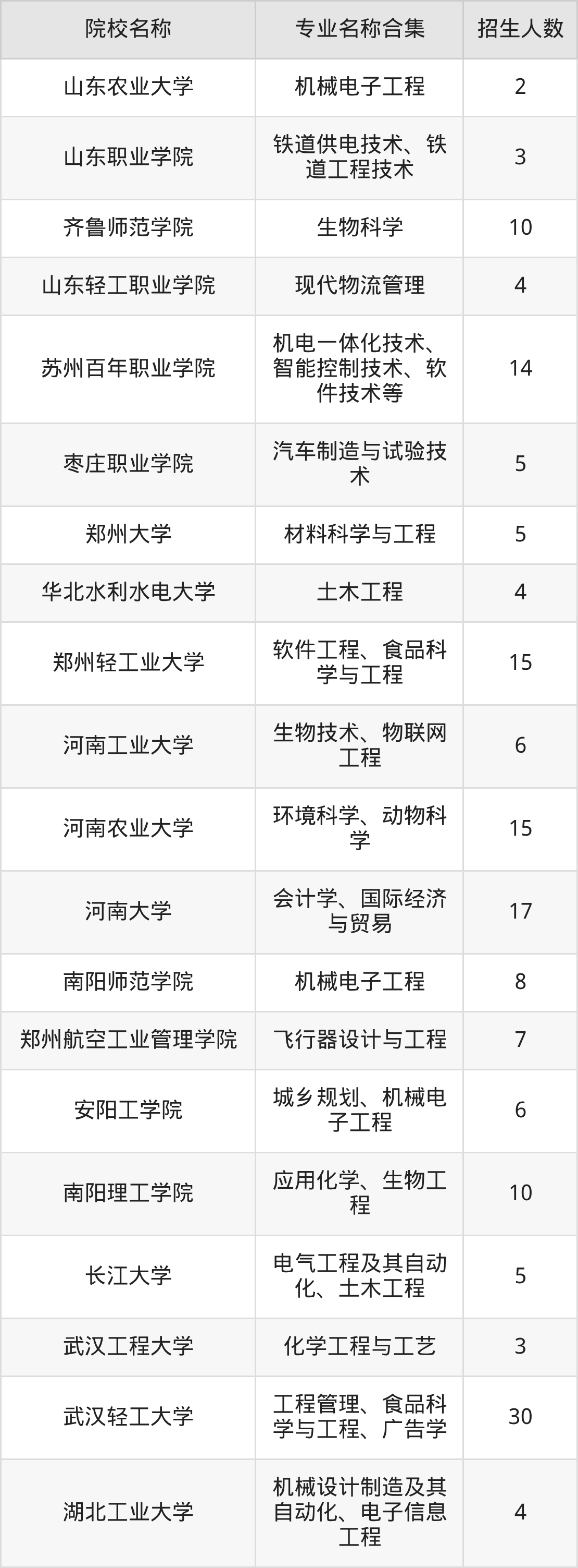 山东:中国海洋大学、青岛理工大学、聊城大学、鲁东大学、山东交通学院、山东农业大学、山东职业学院、齐鲁师范学院、山东轻工职业学院、枣庄职业学院