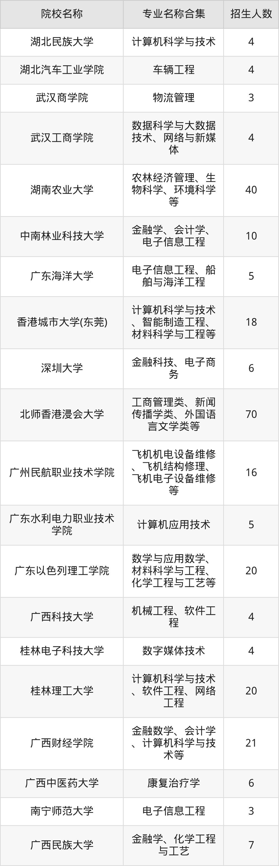 广东:华南理工大学、暨南大学、广东海洋大学、香港城市大学(东莞)、深圳大学、北师香港浸会大学、广州民航职业技术学院、广东水利电力职业技术学院、广东以色列理工学院、深圳北理莫斯科大学、南方科技大学、香港科技大学(广州)