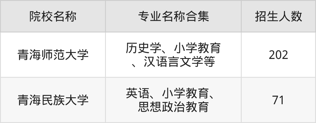 地方公费师范生院校,2025年共有2所院校在青海招生,共计招生273人,历史类招110人、物理类招163人。
