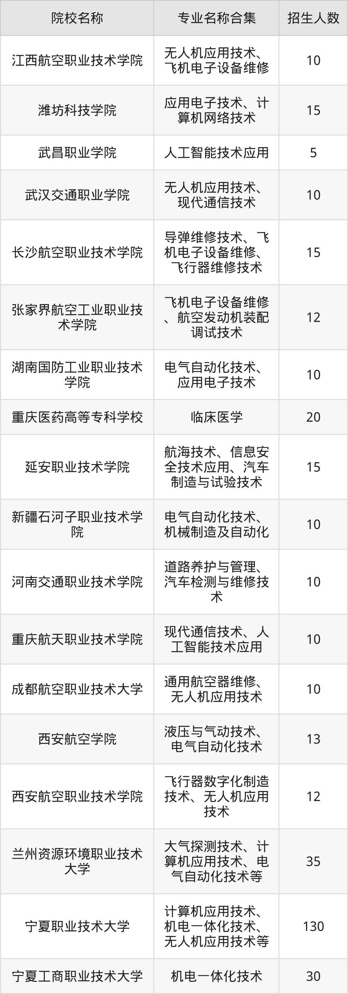 湖南:长沙航空职业技术学院、张家界航空工业职业技术学院、湖南国防工业职业技术学院