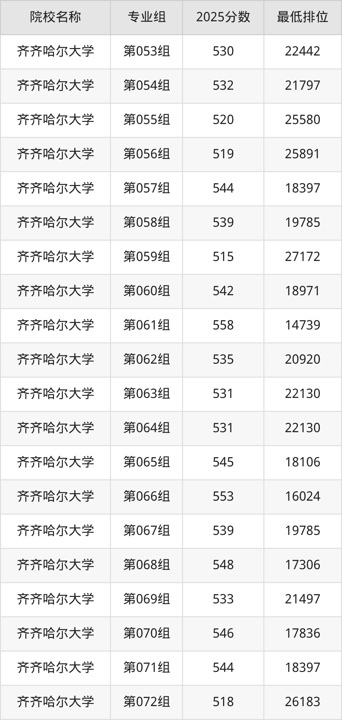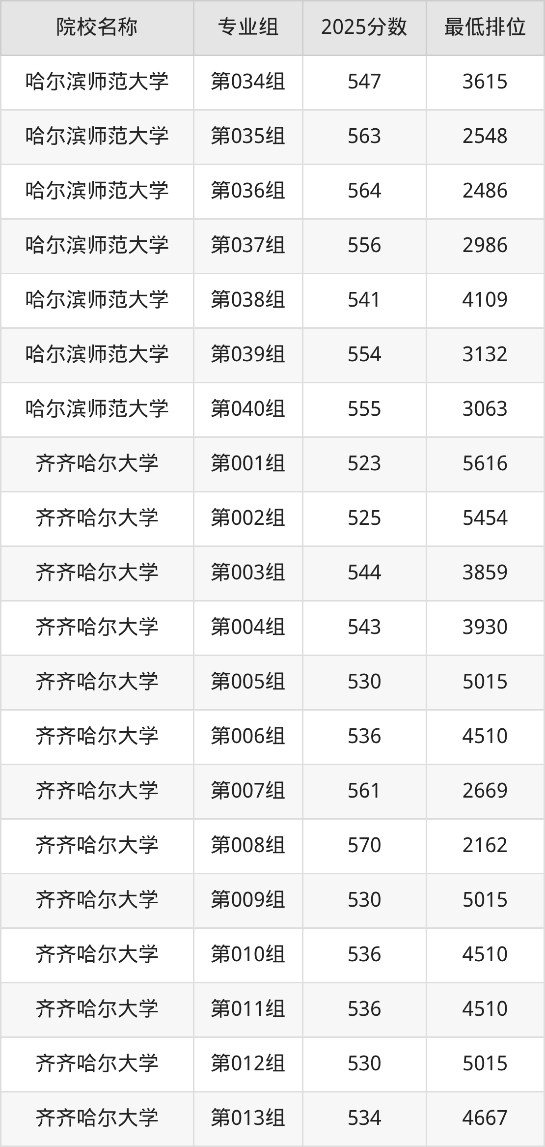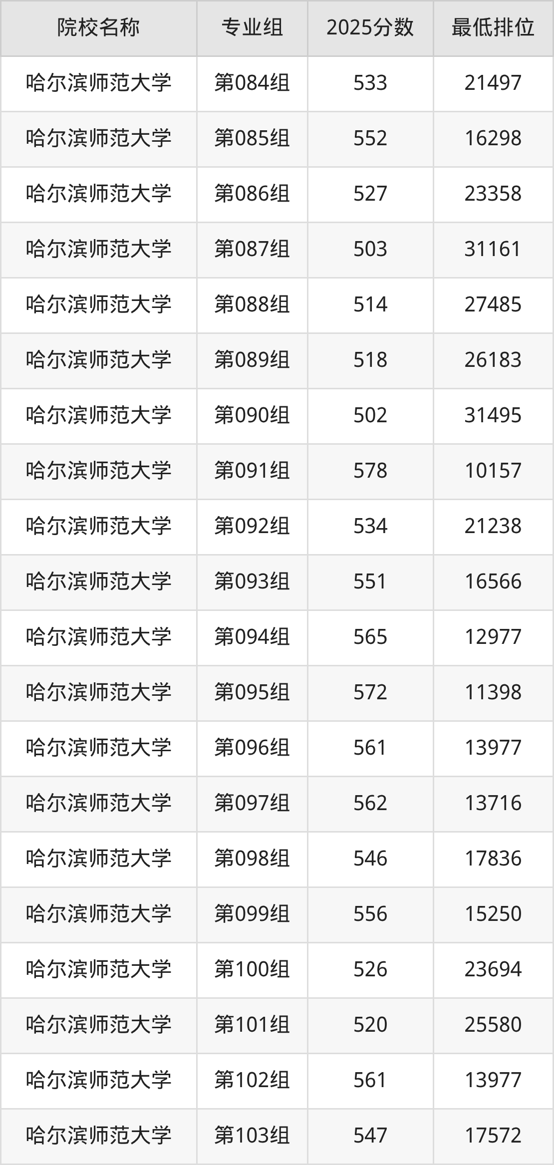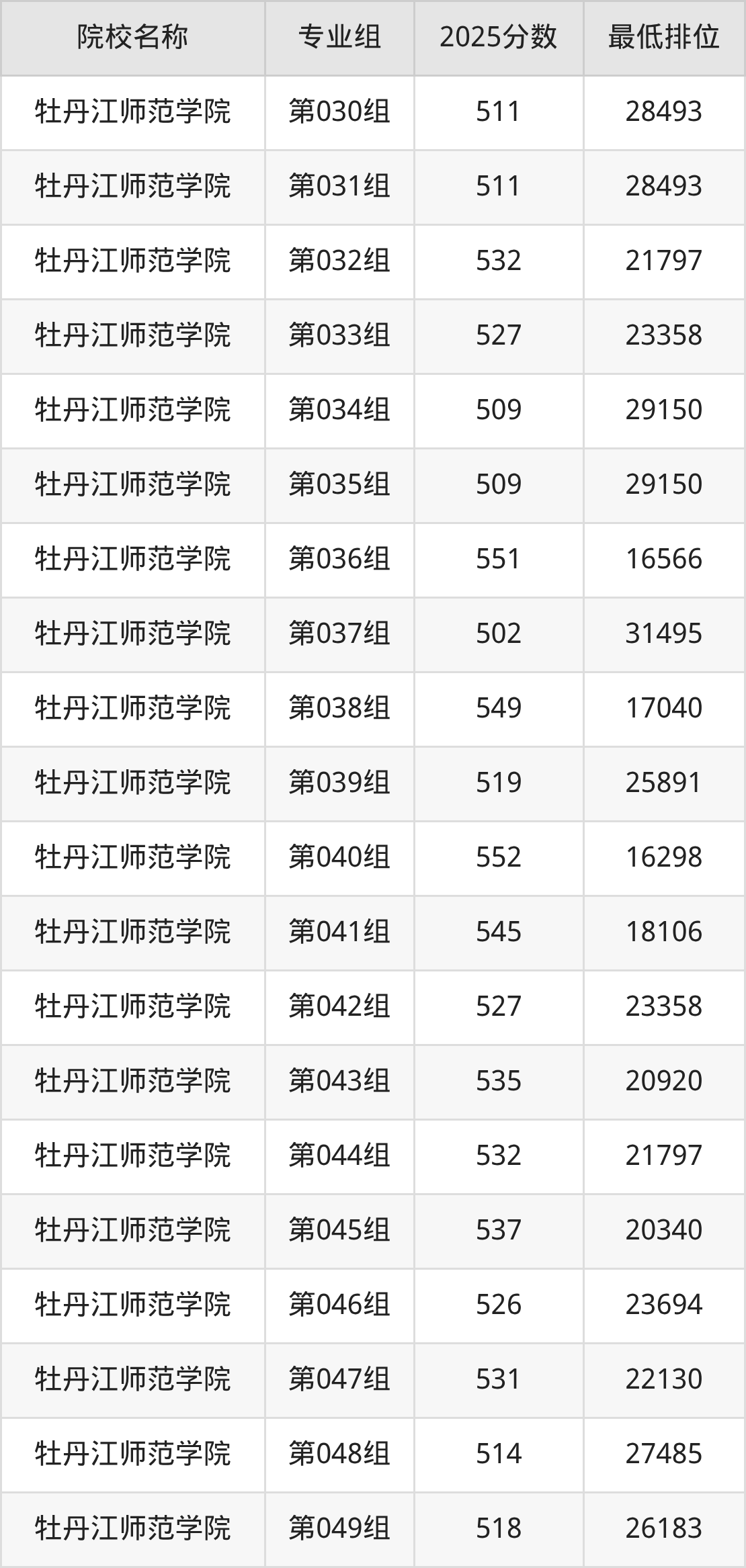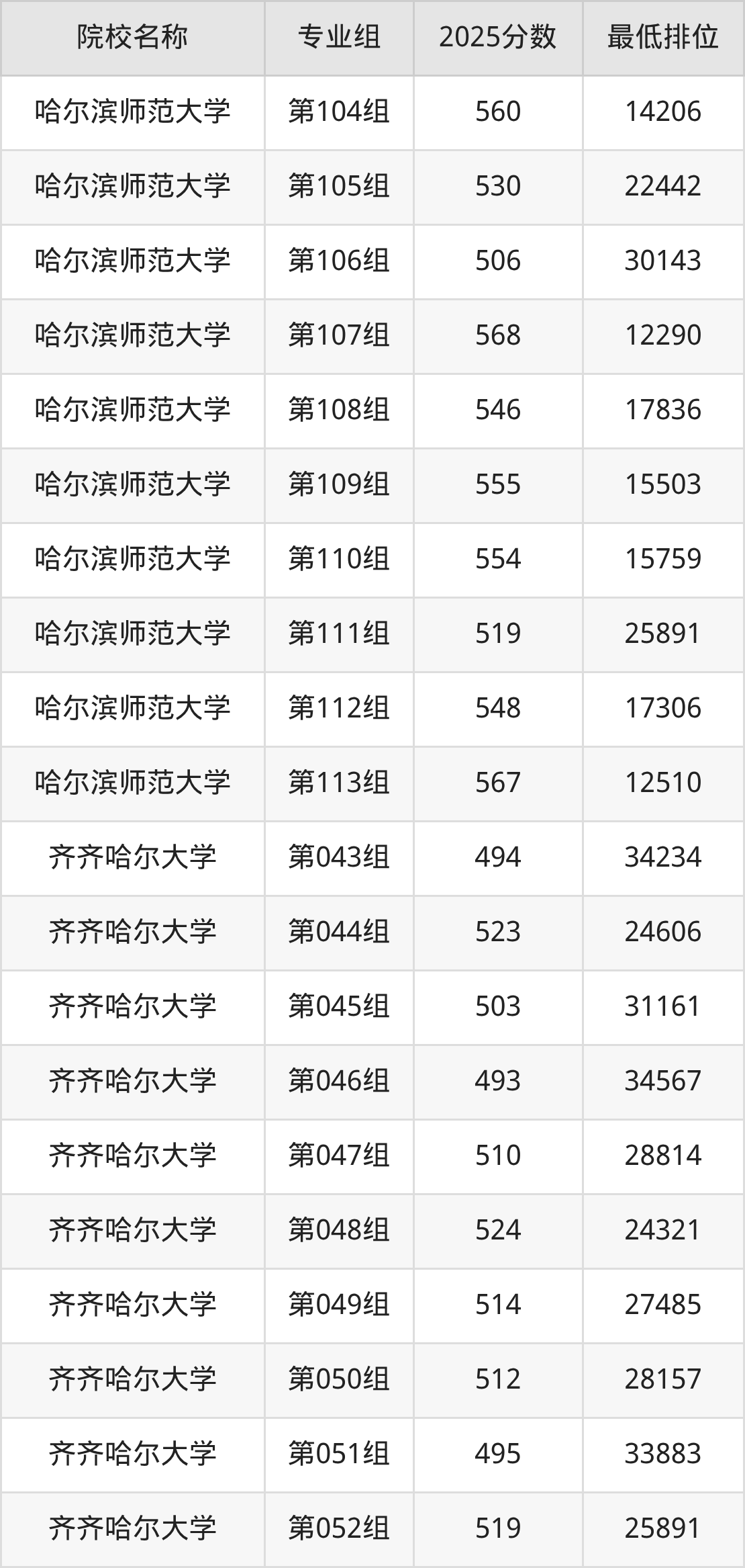 第二梯队(491-579分):佳木斯大学(第019组是556分)、佳木斯大学(第020组是542分)、佳木斯大学(第022组是568分)、哈尔滨师范大学(第069组是527分)