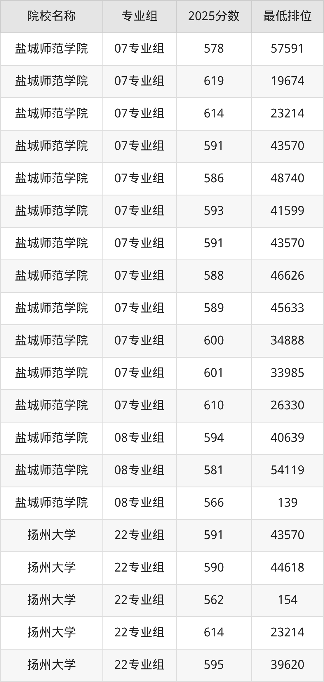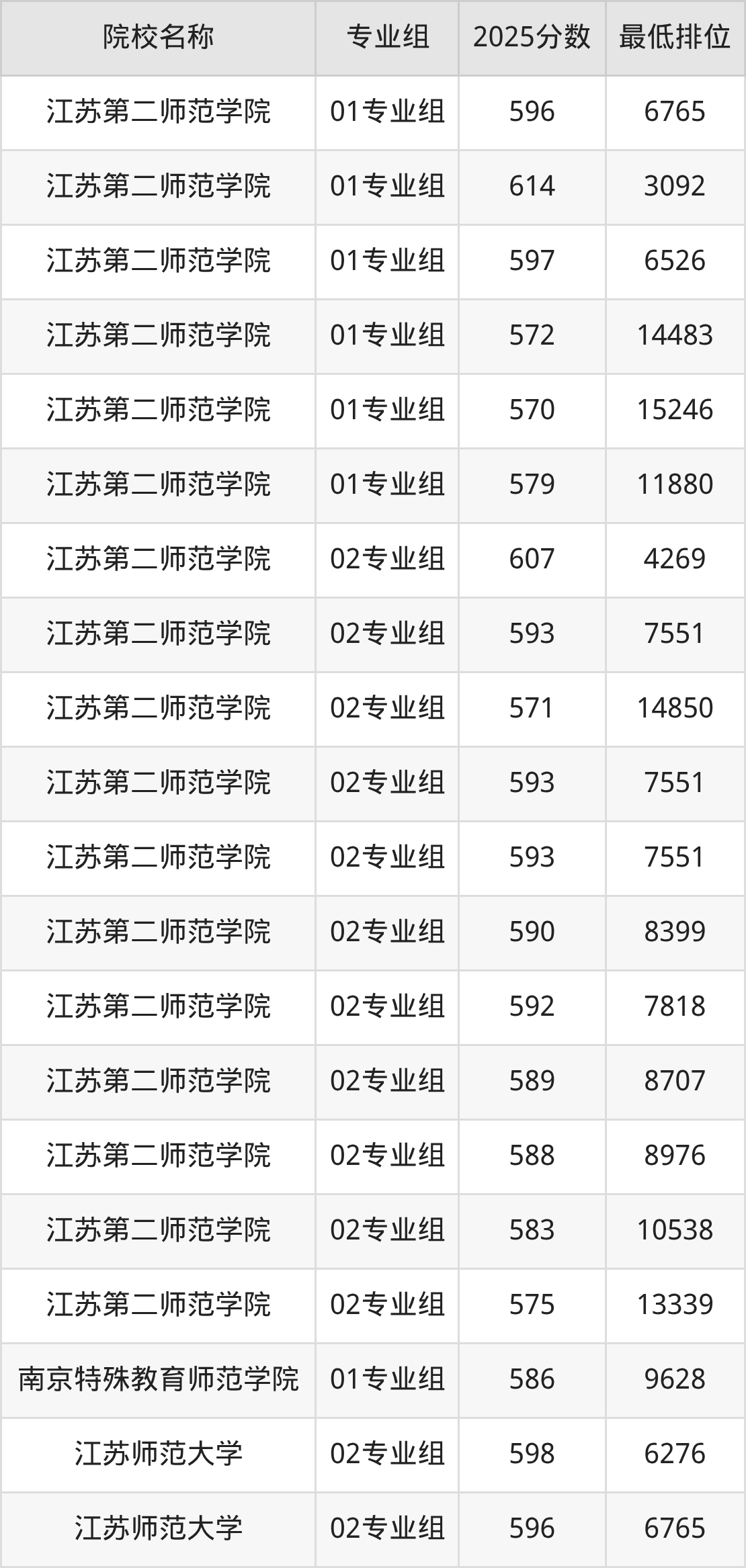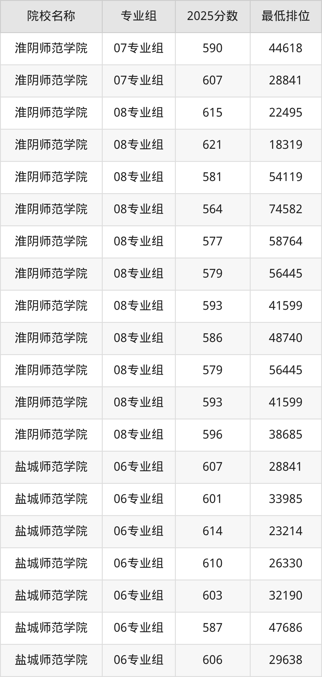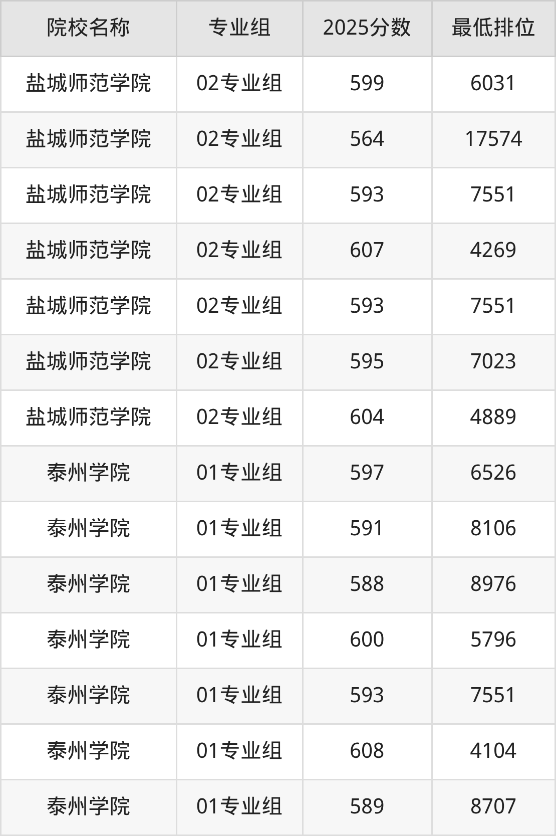 第三梯队(570分及以下):江苏第二师范学院(01专业组是570分)、盐城师范学院(02专业组是564分)