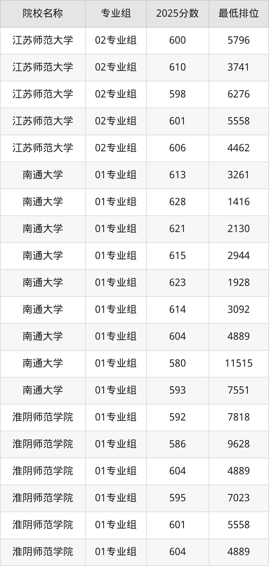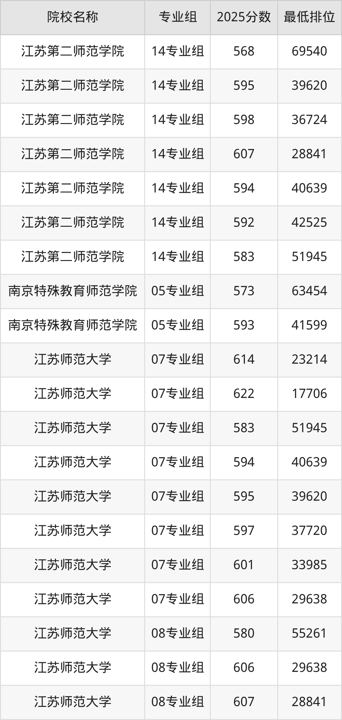附地方公费师范生院校2025年在江苏高考物理类的录取分数线一览表: