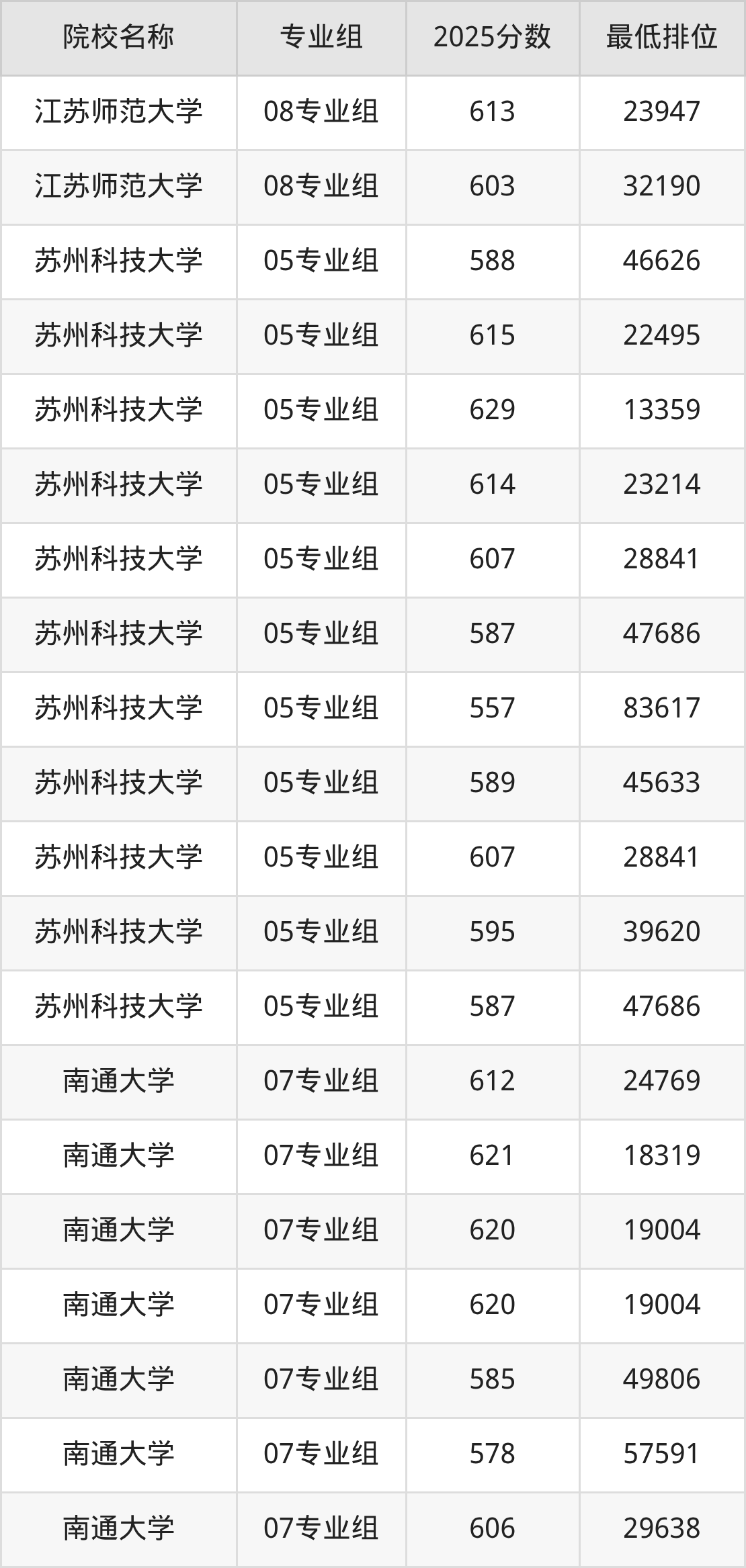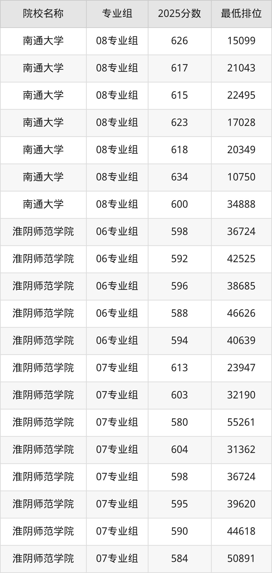第一梯队(630分+):南京信息工程大学(07专业组是631分)、南京信息工程大学(07专业组是631分)、南京晓庄学院(09专业组是630分)、南通大学(08专业组是634分)