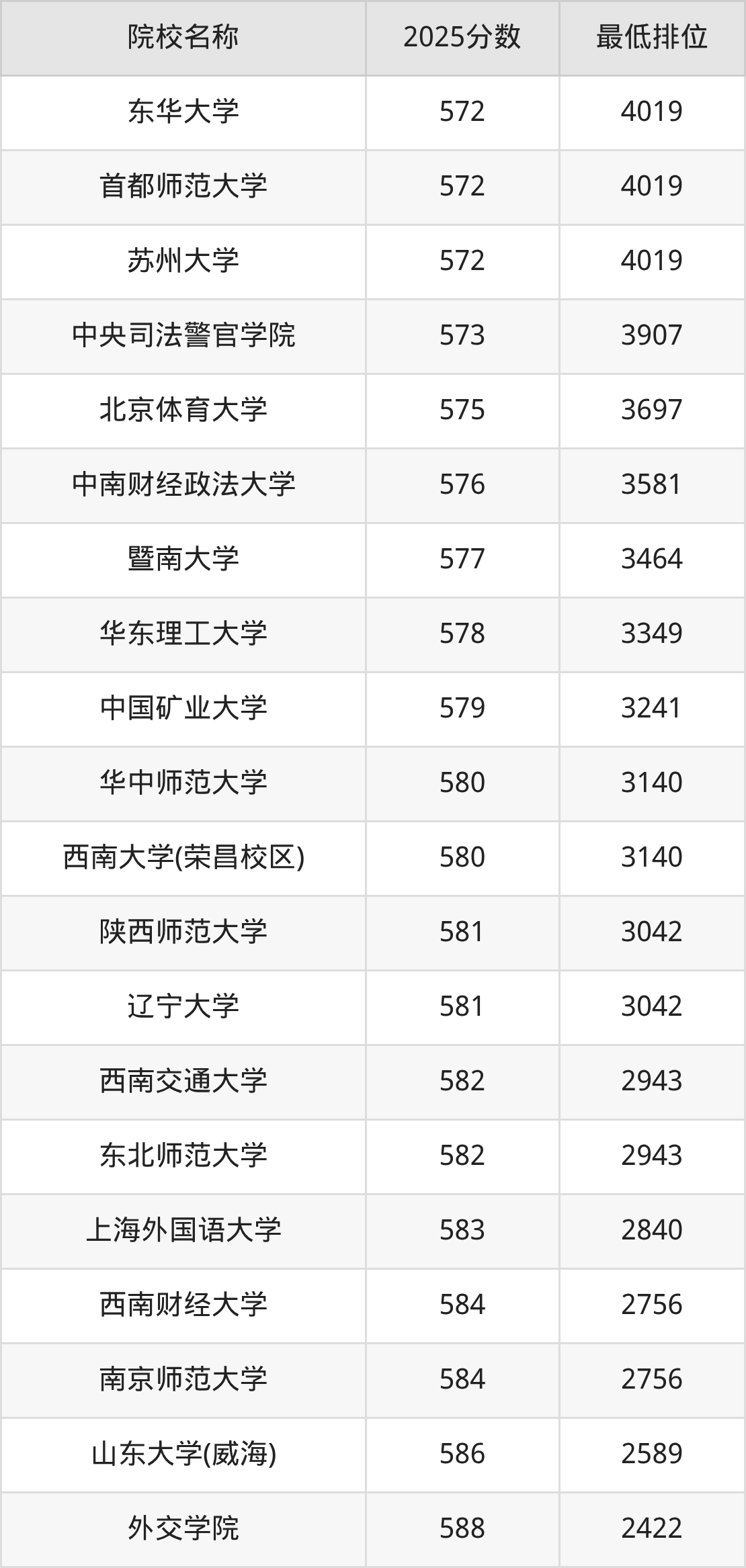 第三梯队(520分及以下):四川外国语大学(510分)、山东师范大学(520分)