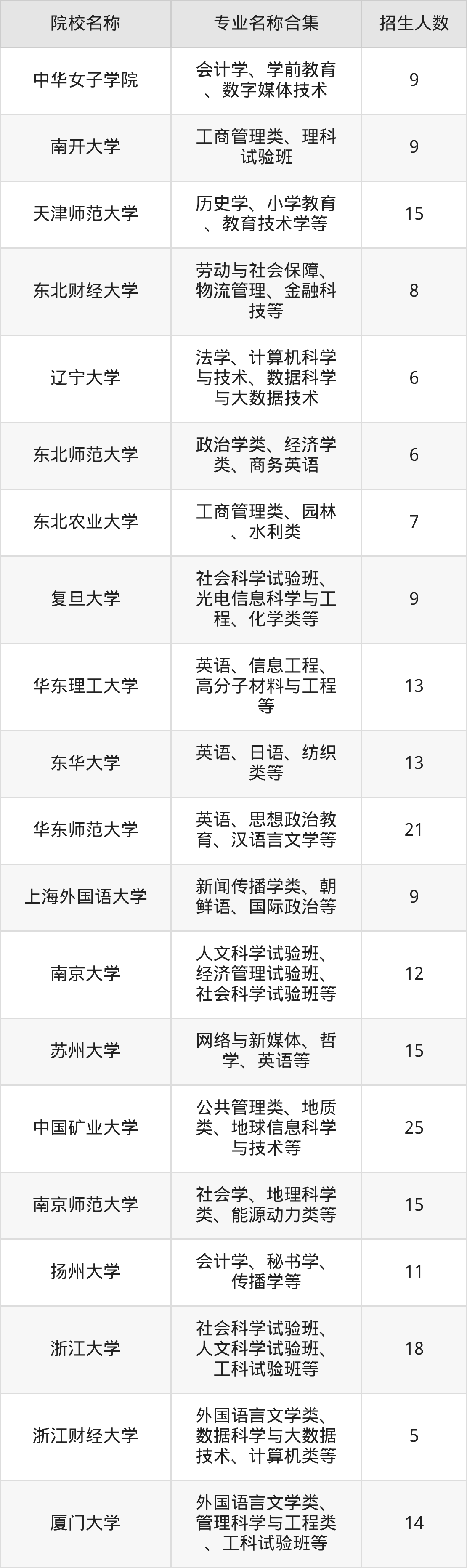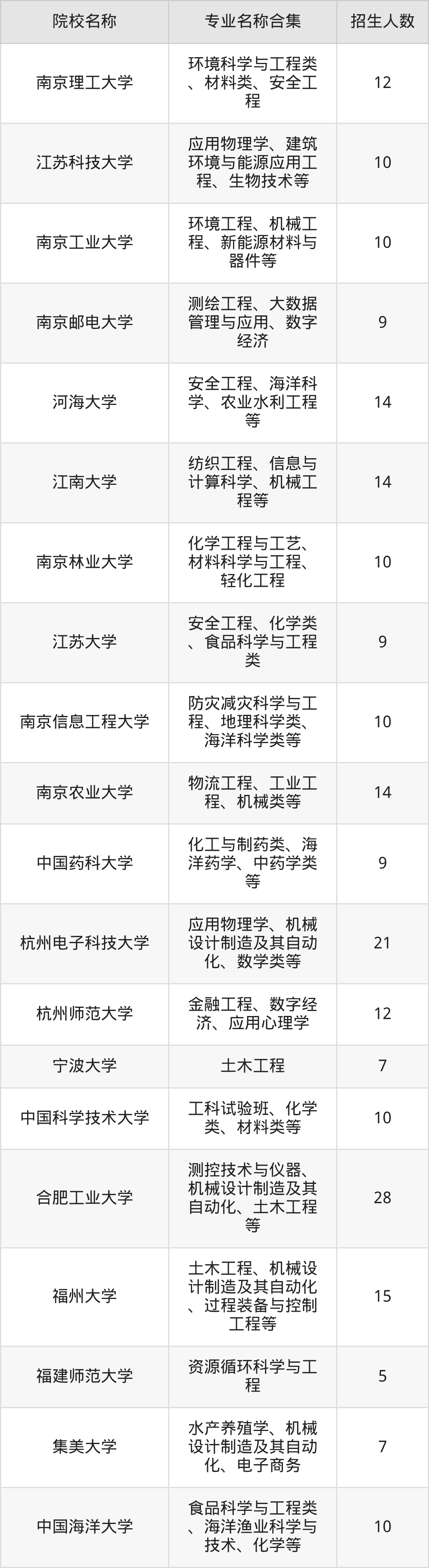 江苏:南京警察学院、国际关系学院、南京大学、苏州大学、中国矿业大学、南京师范大学、扬州大学、东南大学、南京航空航天大学、南京理工大学、江苏科技大学、南京工业大学、南京邮电大学、河海大学、江南大学、南京林业大学、江苏大学、南京信息工程大学、南京农业大学、中国药科大学