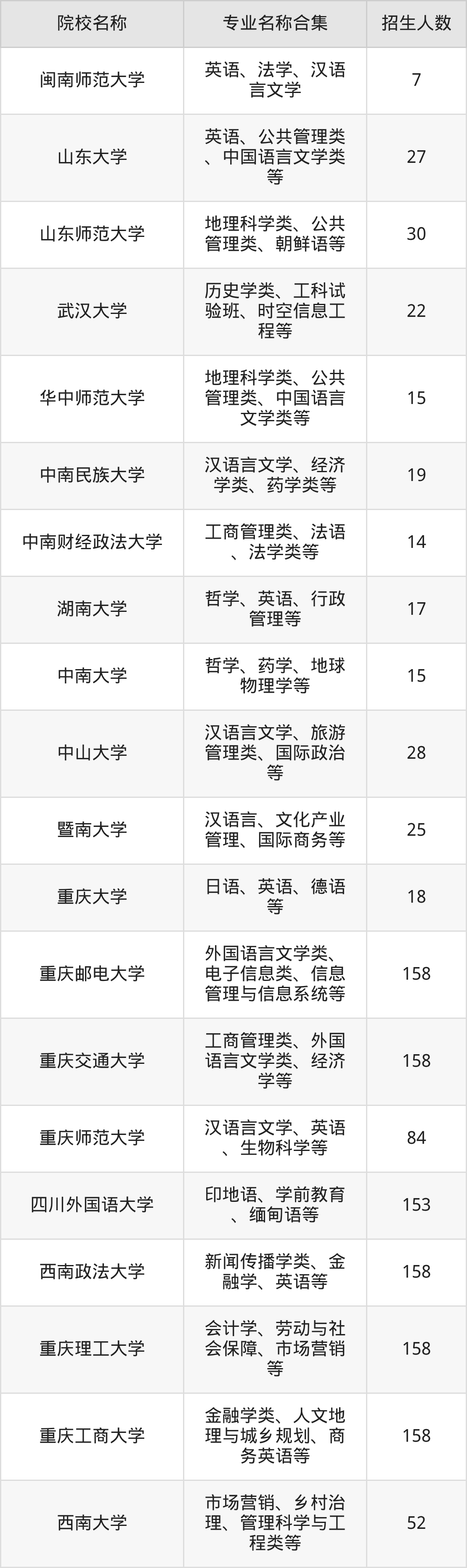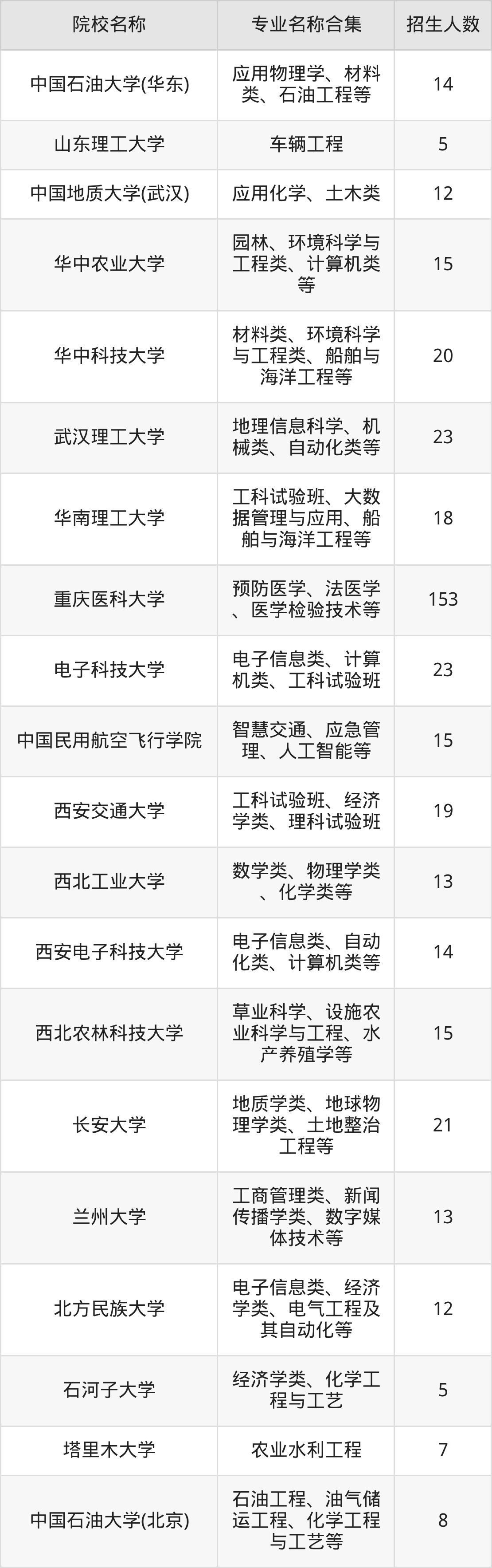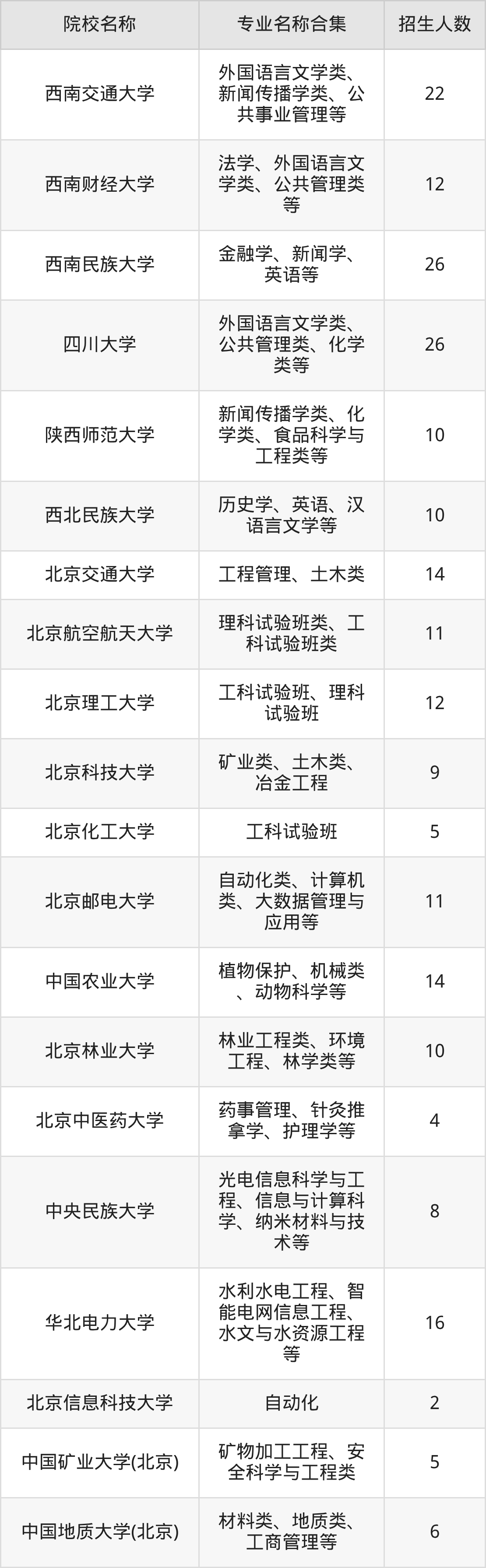 附重庆高考国家专项计划院校2025年招生专业、招生计划人数: