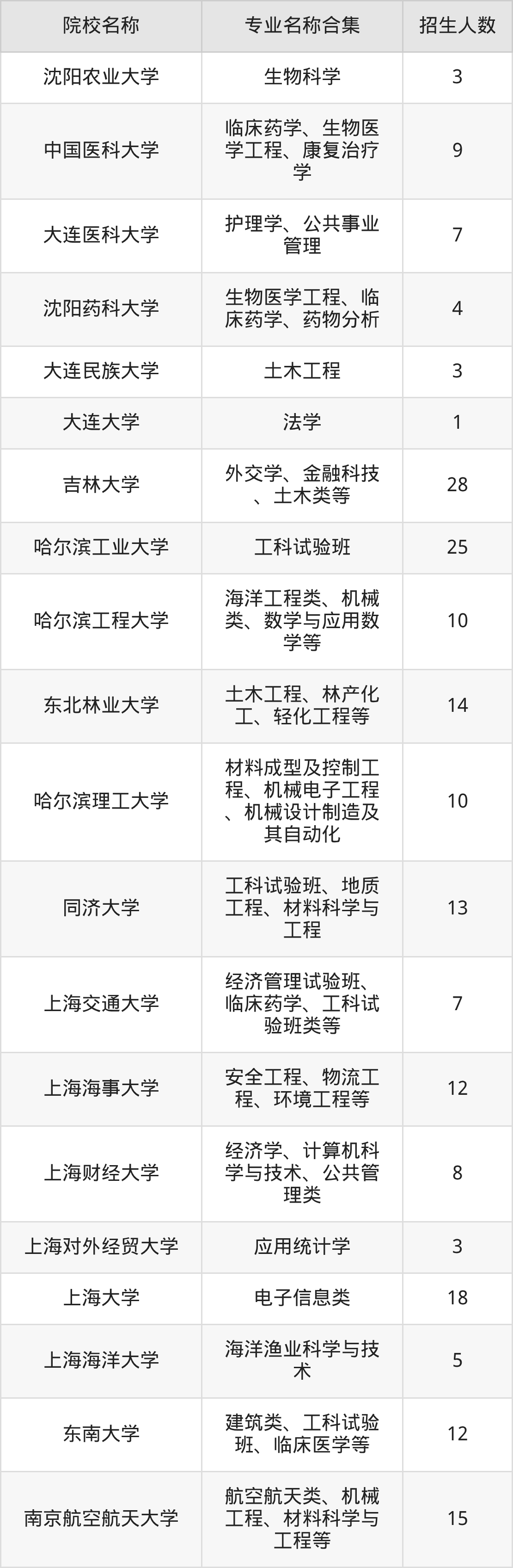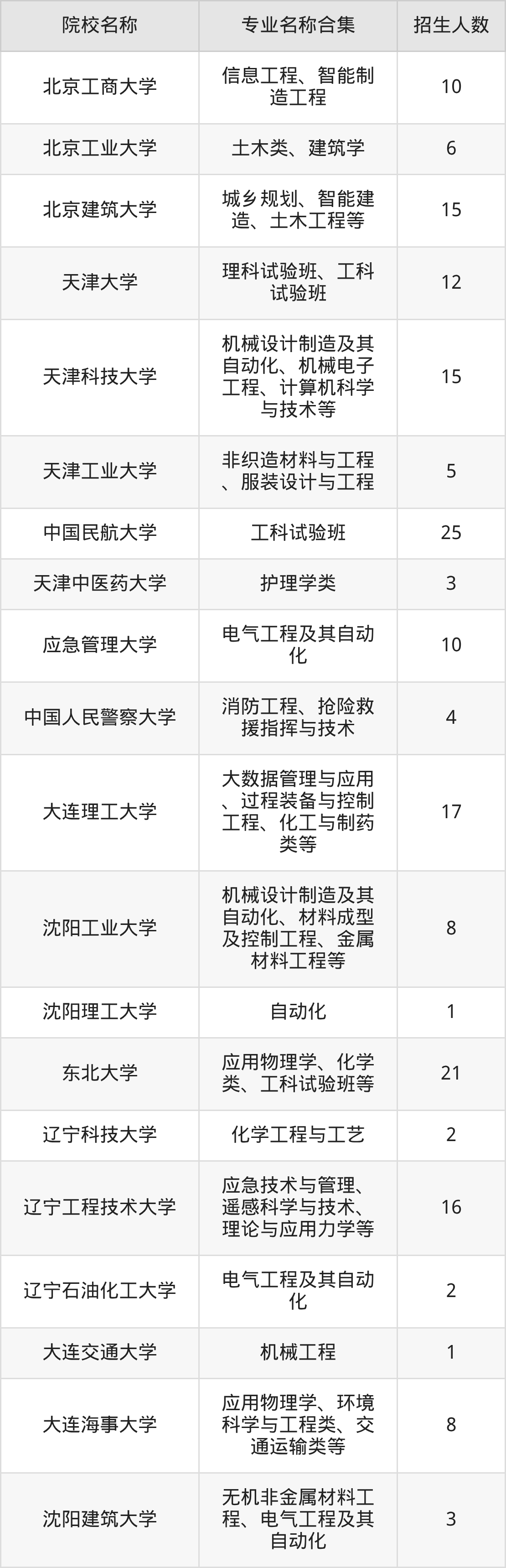 辽宁:中国刑事警察学院、东北财经大学、辽宁大学、大连理工大学、沈阳工业大学、沈阳理工大学、东北大学、辽宁科技大学、辽宁工程技术大学、辽宁石油化工大学、大连交通大学、大连海事大学、沈阳建筑大学、沈阳农业大学、中国医科大学、大连医科大学、沈阳药科大学、大连民族大学、大连大学